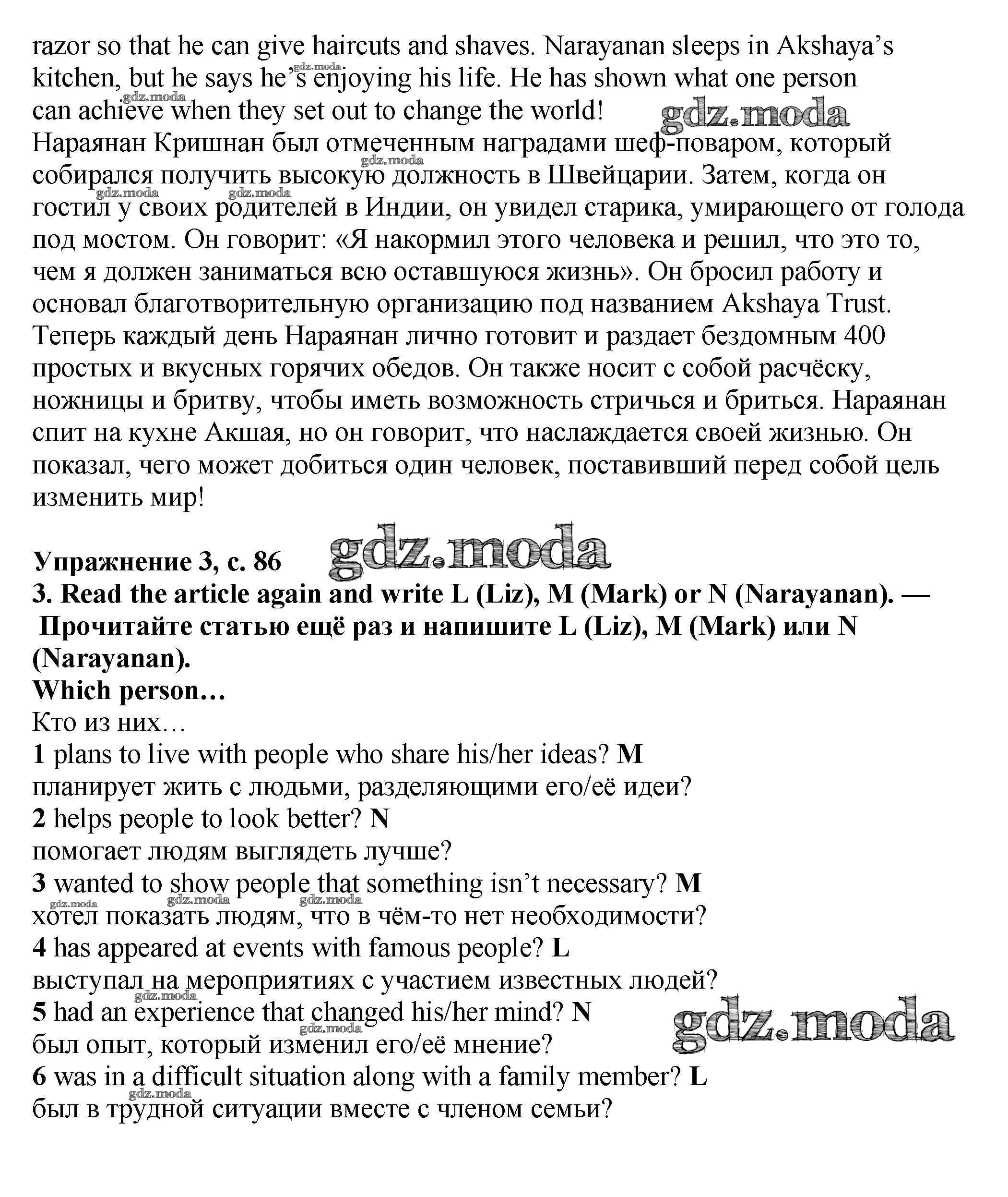 ОТВЕТ на задание № стр.86-87 Учебник по Английскому языку 7 класс Баранова Starlight Углубленный уровень