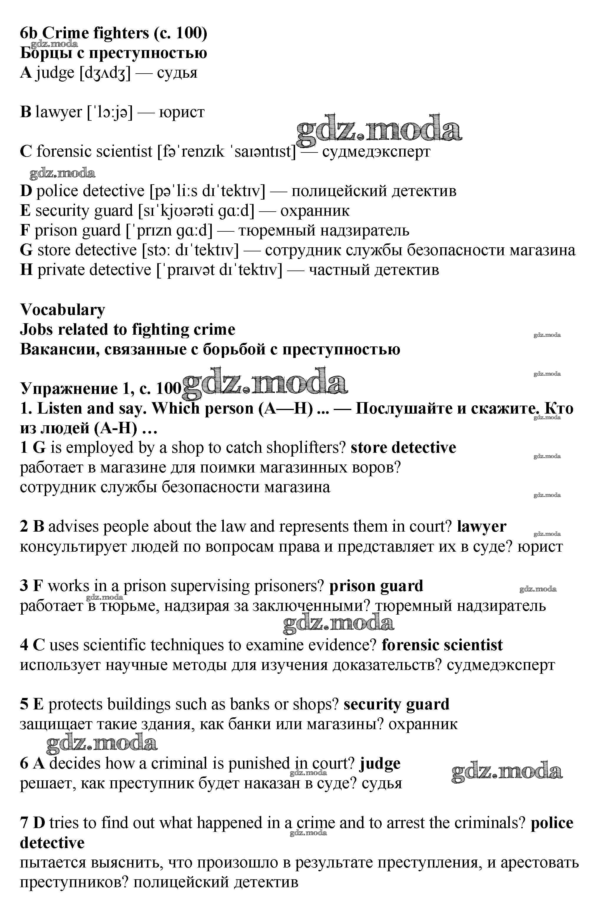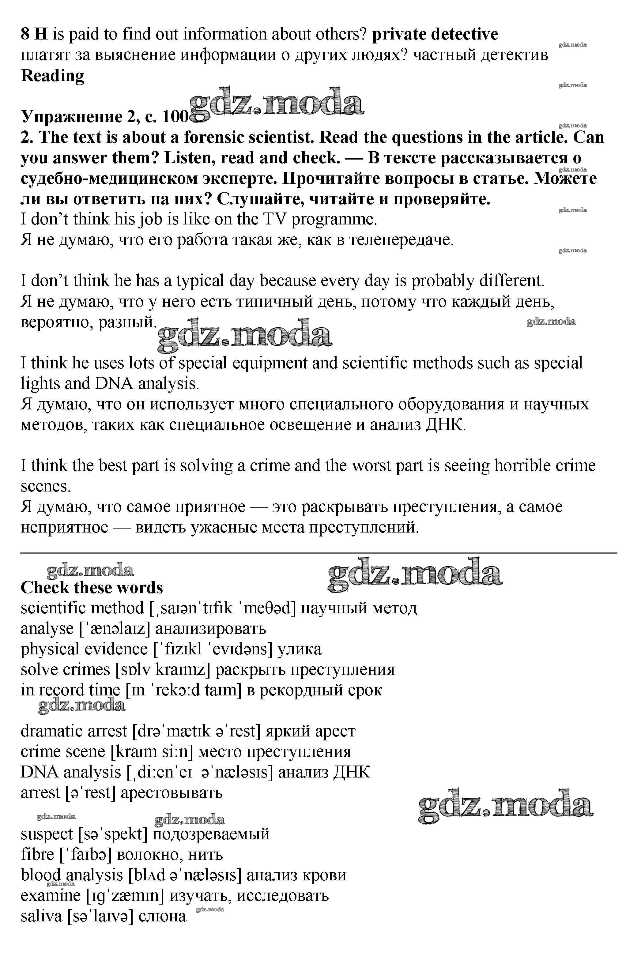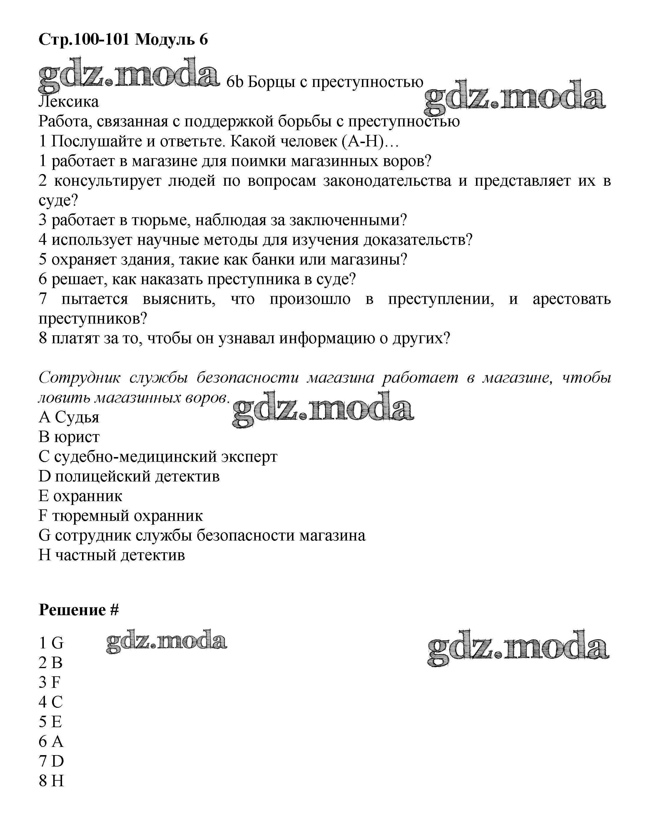 ОТВЕТ на задание № стр.100-101 Учебник по Английскому языку 7 класс Баранова Starlight Углубленный уровень