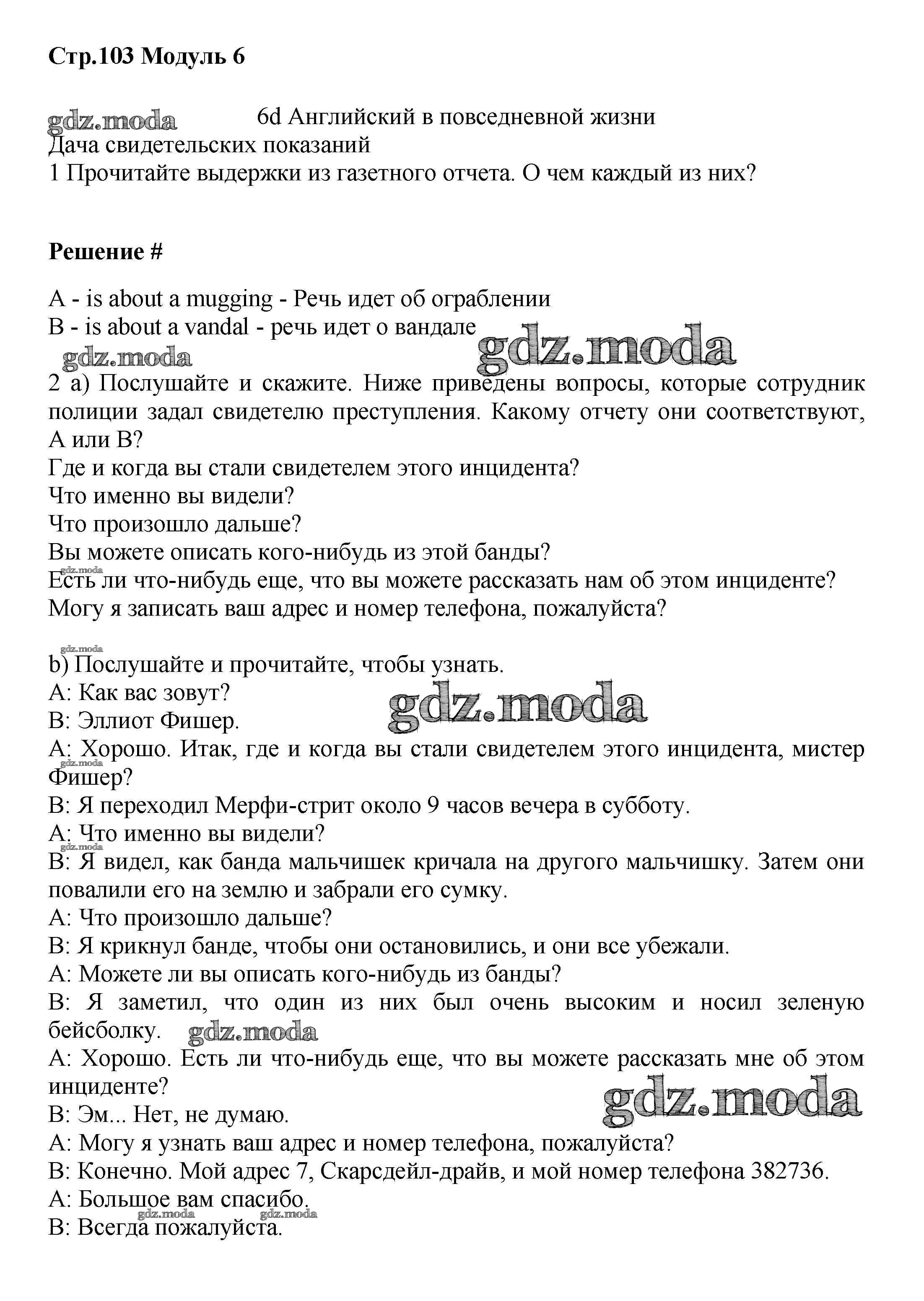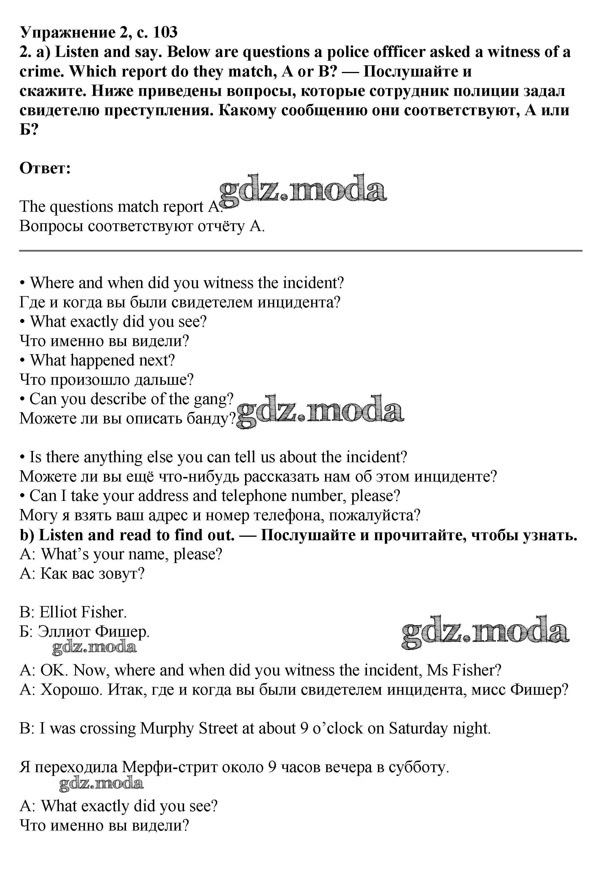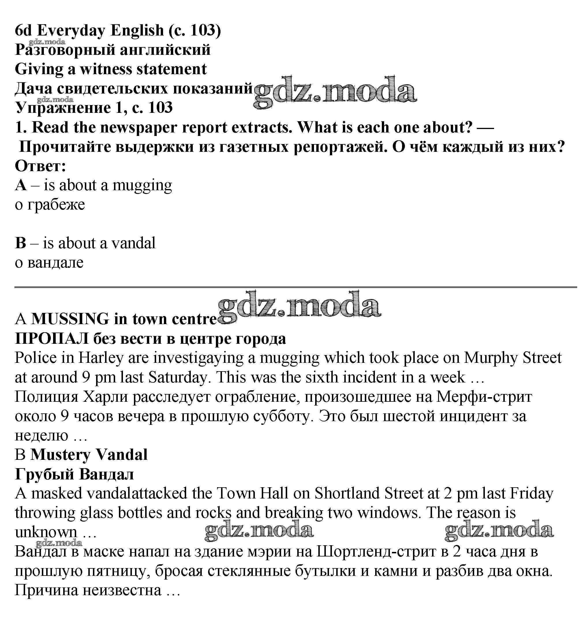 ОТВЕТ на задание № стр.103 Учебник по Английскому языку 7 класс Баранова Starlight Углубленный уровень