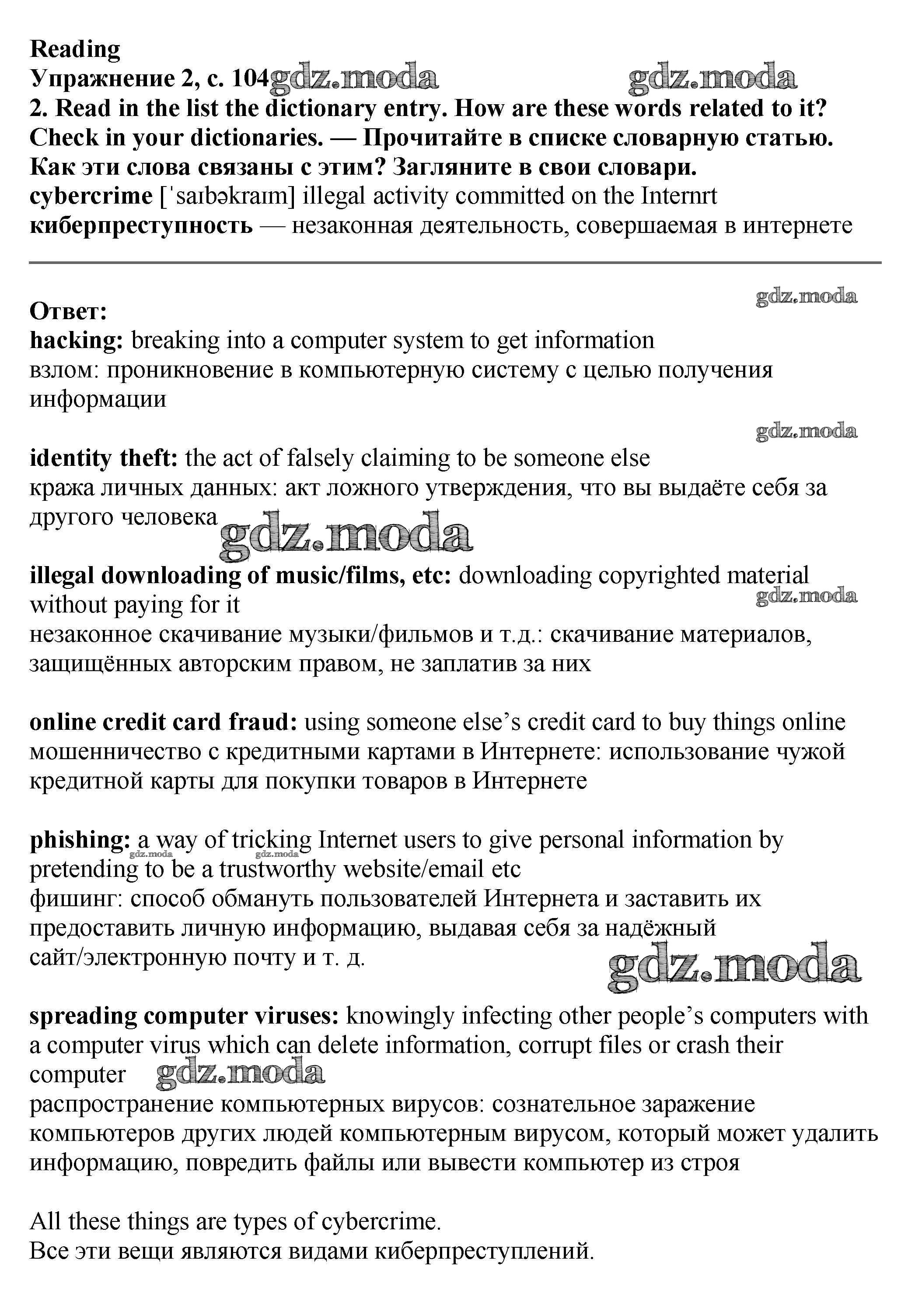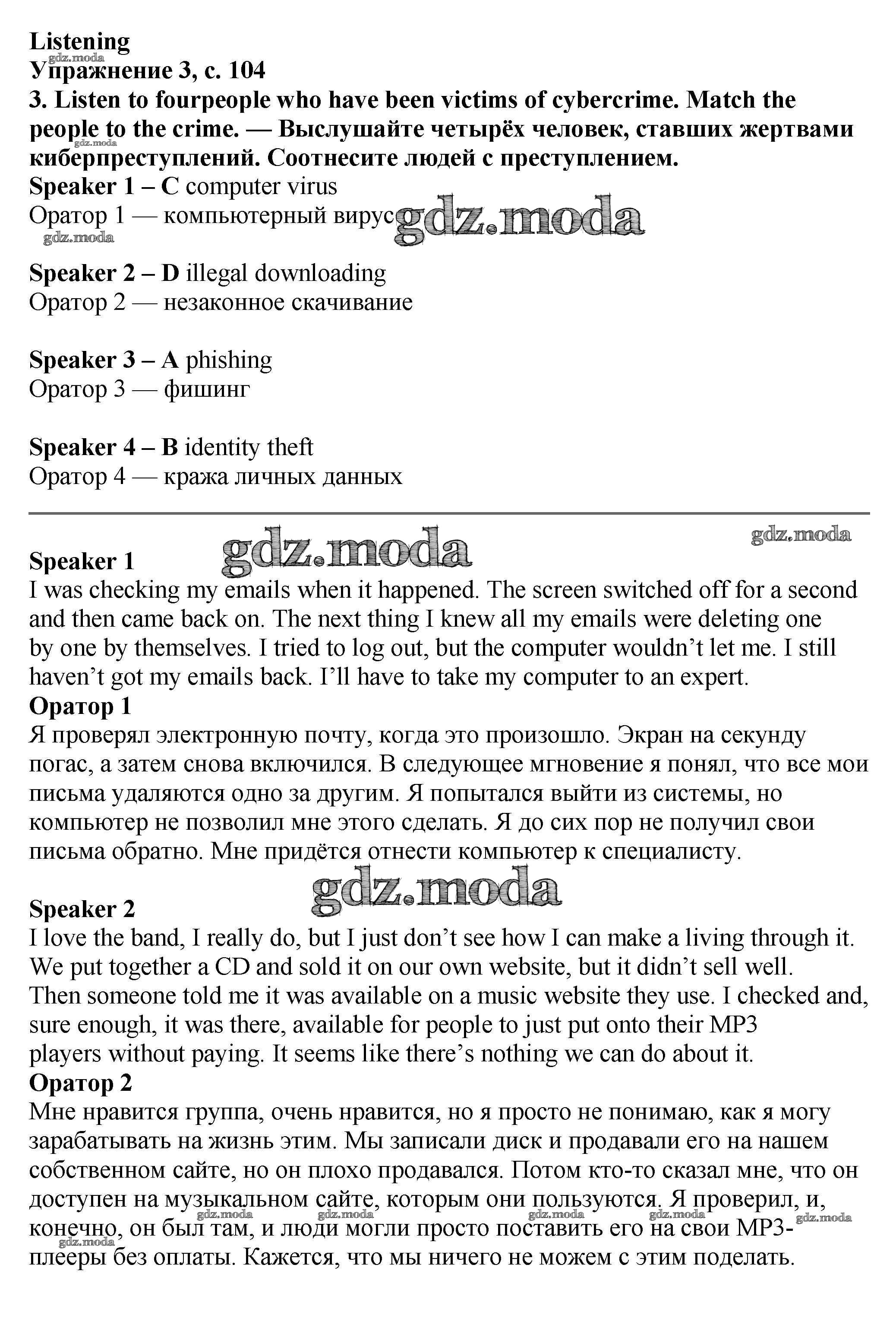 ОТВЕТ на задание № стр.104-105 Учебник по Английскому языку 7 класс Баранова Starlight Углубленный уровень