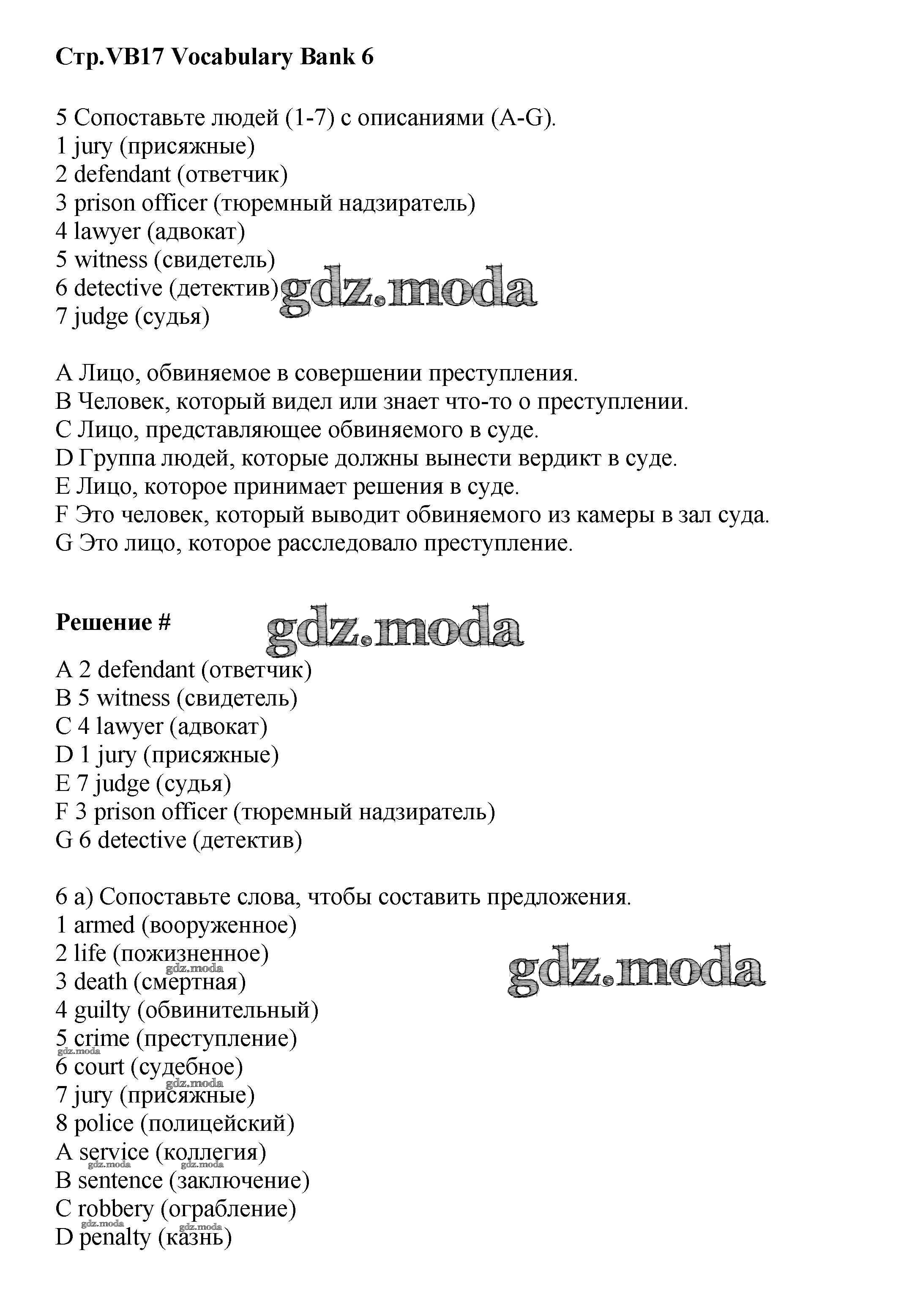 ОТВЕТ на задание № VB17 Учебник по Английскому языку 7 класс Баранова Starlight Углубленный уровень