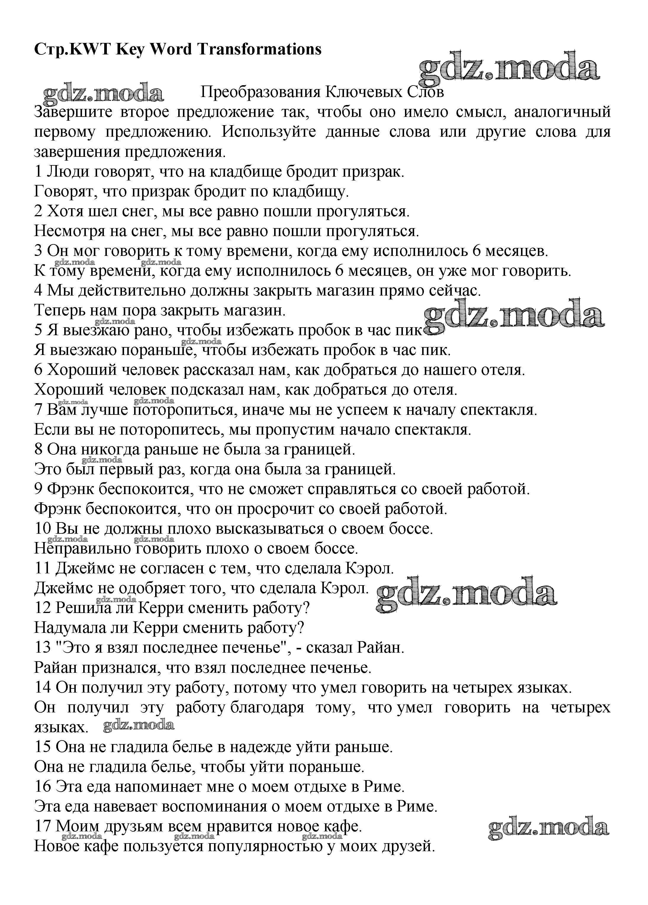 ОТВЕТ на задание № KWT1-KWT3 Учебник по Английскому языку 7 класс Баранова Starlight Углубленный уровень