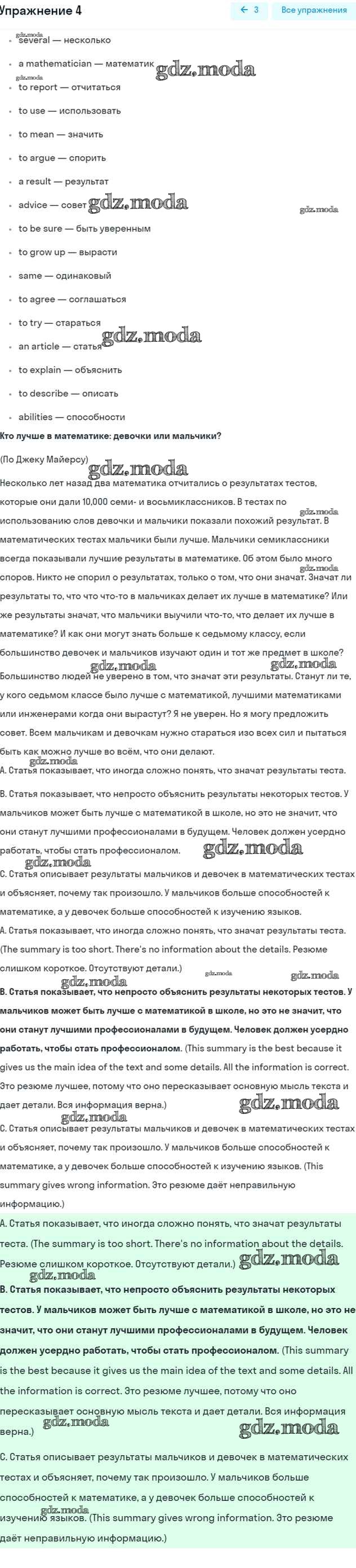 ОТВЕТ на задание № 4 Учебник по Английскому языку 7 класс Кузовлев УМК