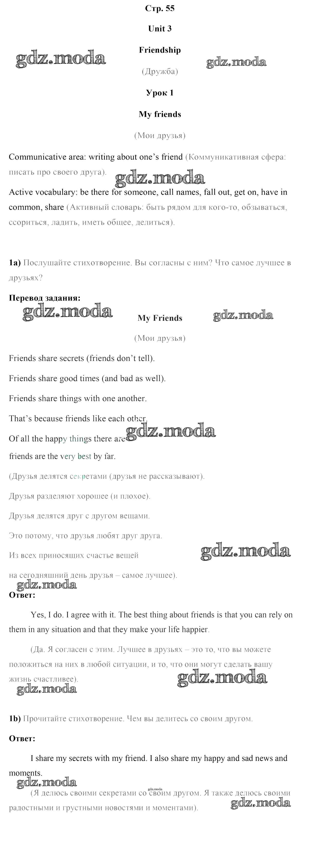 ГДЗ решение к заданию № 55 Английский язык 7 класс Юхнель Н.В. Высшая школа 2016 ФГОС бесплатно на гдз.мода!