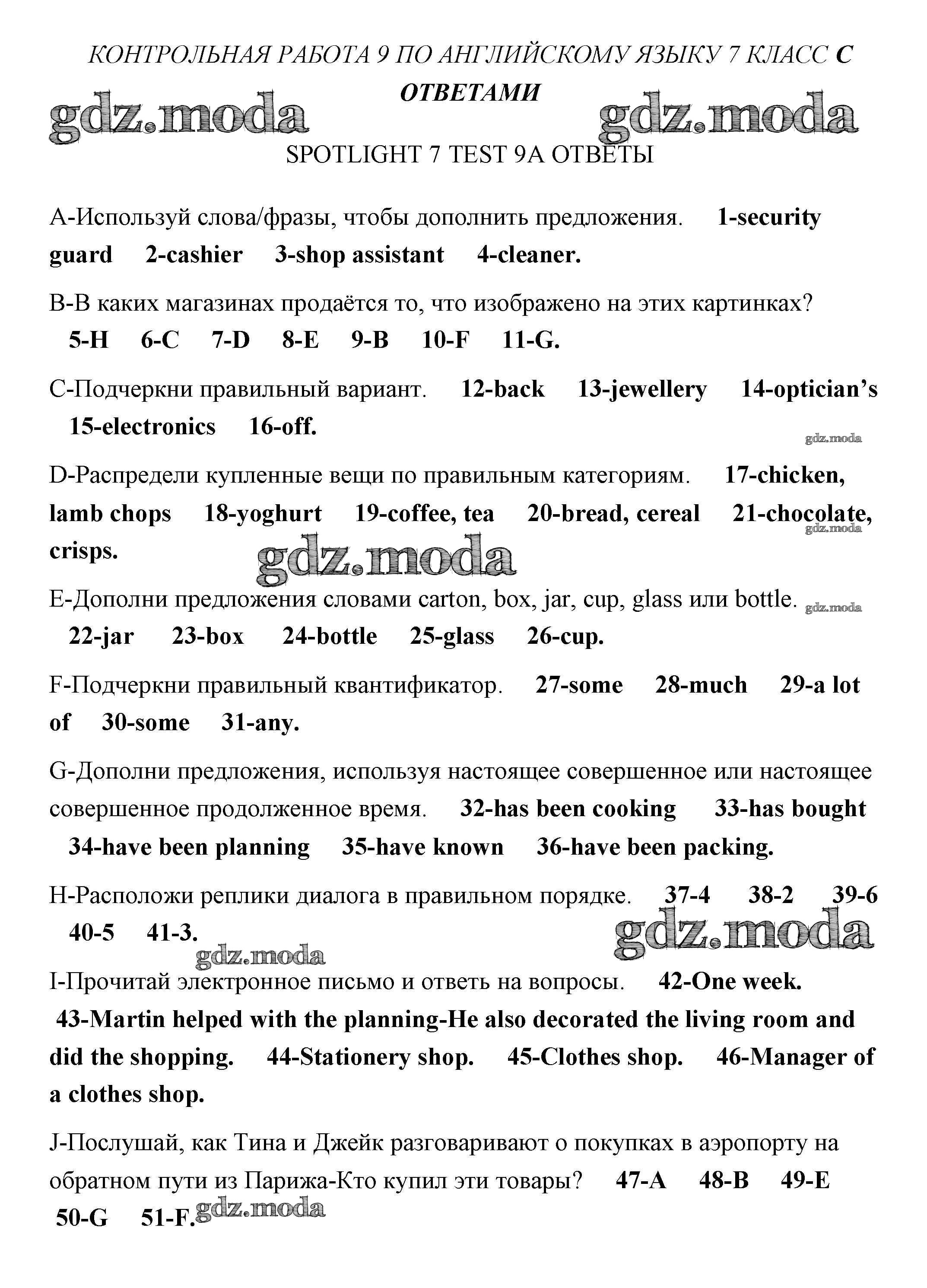 ГДЗ решение к заданию № 1 Английский язык 7 класс контрольные задания Ваулина Spotlight Просвещение 2015 ФГОС бесплатно на гдз.мода!