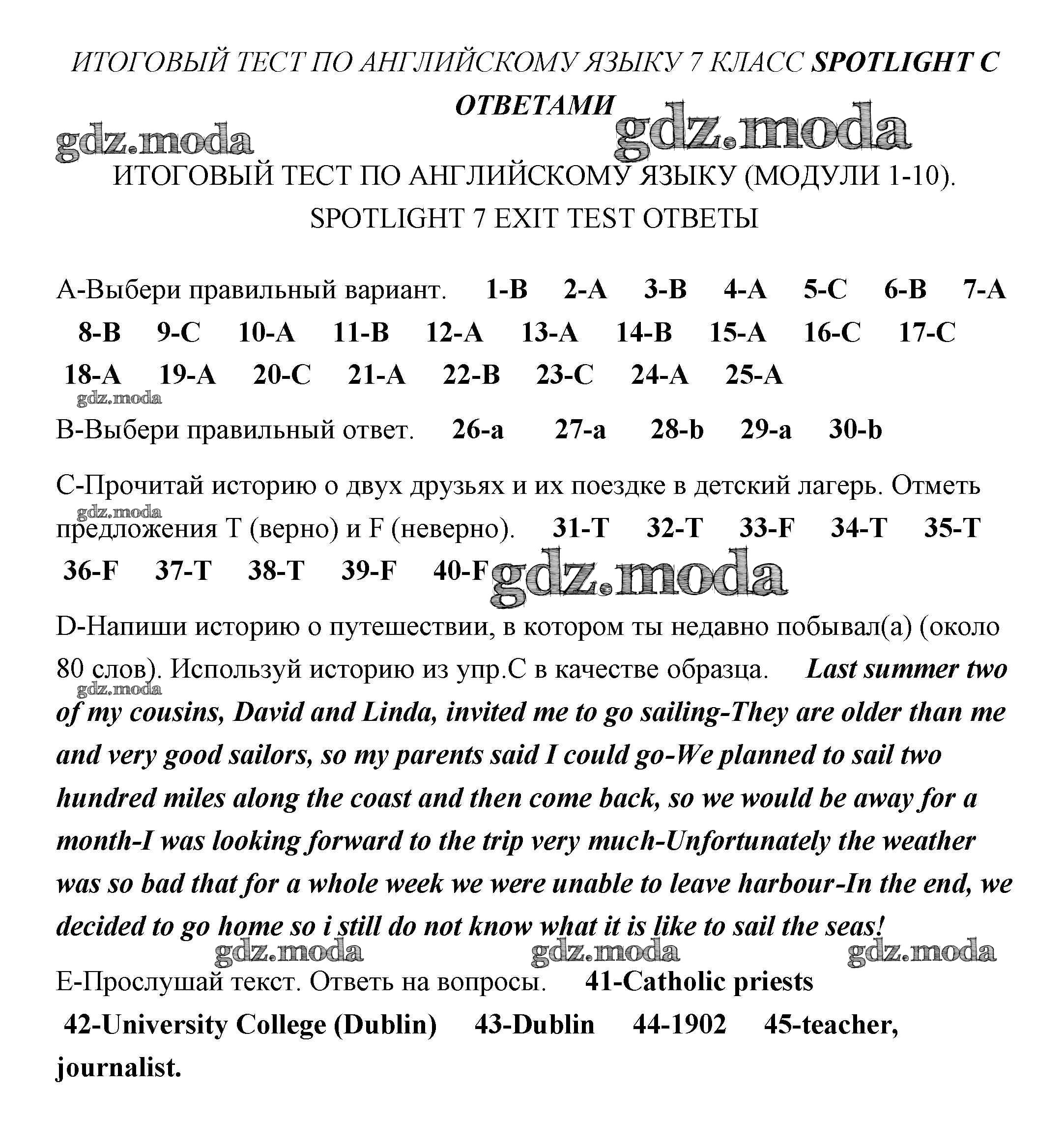 ГДЗ решение к заданию № 1 Английский язык 7 класс контрольные задания Ваулина Spotlight Просвещение 2015 ФГОС бесплатно на гдз.мода!