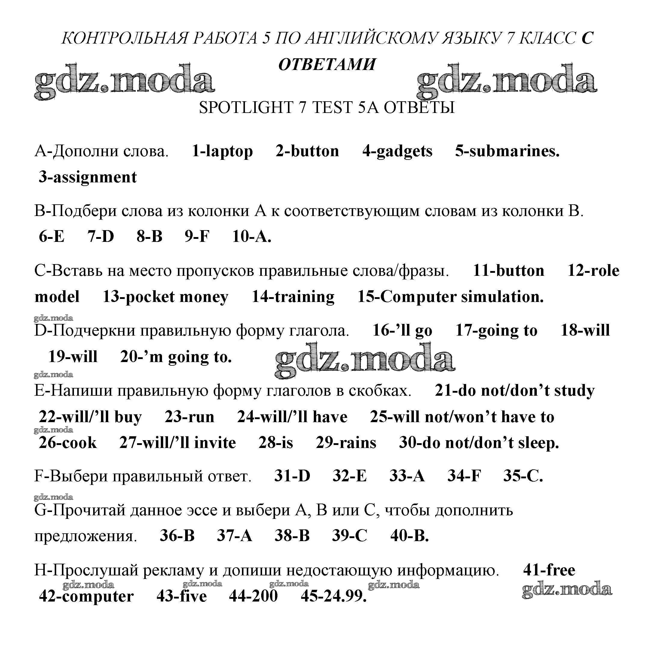 ГДЗ решение к заданию № 1 Английский язык 7 класс контрольные задания Ваулина Spotlight Просвещение 2015 ФГОС бесплатно на гдз.мода!
