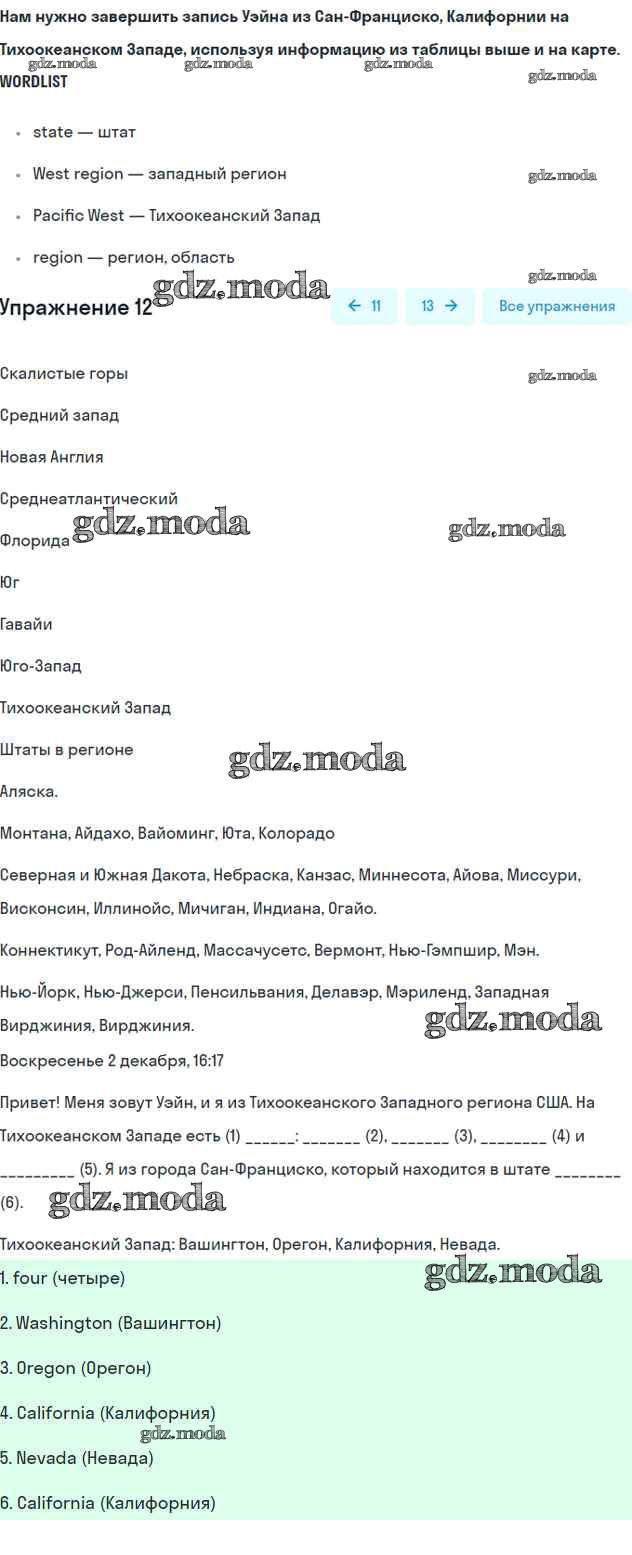 ОТВЕТ на задание № 12 Рабочая тетрадь по Английскому языку 7 класс Вербицкая Forward