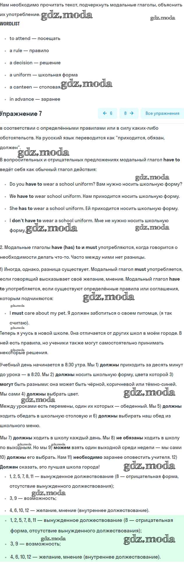 ОТВЕТ на задание № 7 Рабочая тетрадь по Английскому языку 7 класс Вербицкая Forward