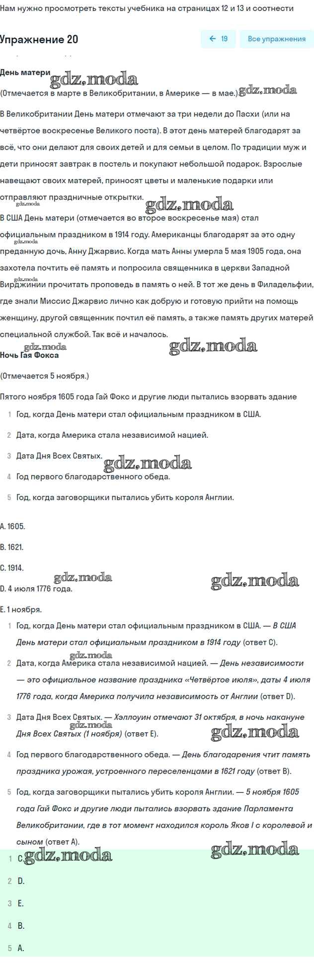 ГДЗ решение к заданию № 20 Английский язык 7 класс рабочая тетрадь Вербицкая Вентана-граф 2015 ФГОС бесплатно на гдз.мода!