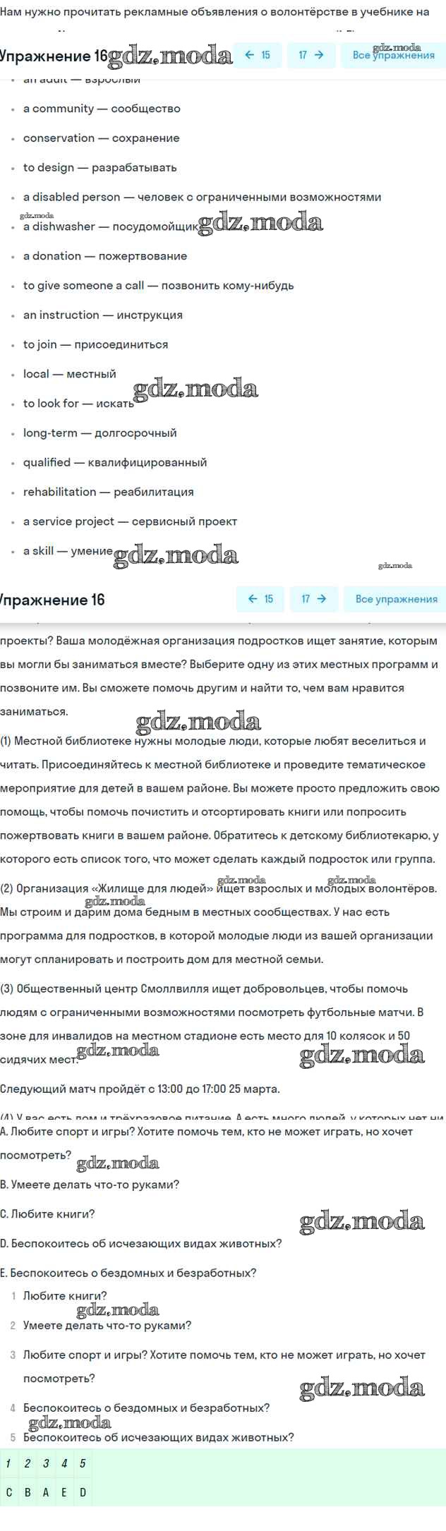 ГДЗ решение к заданию № 16 Английский язык 7 класс рабочая тетрадь Вербицкая Вентана-граф 2015 ФГОС бесплатно на гдз.мода!