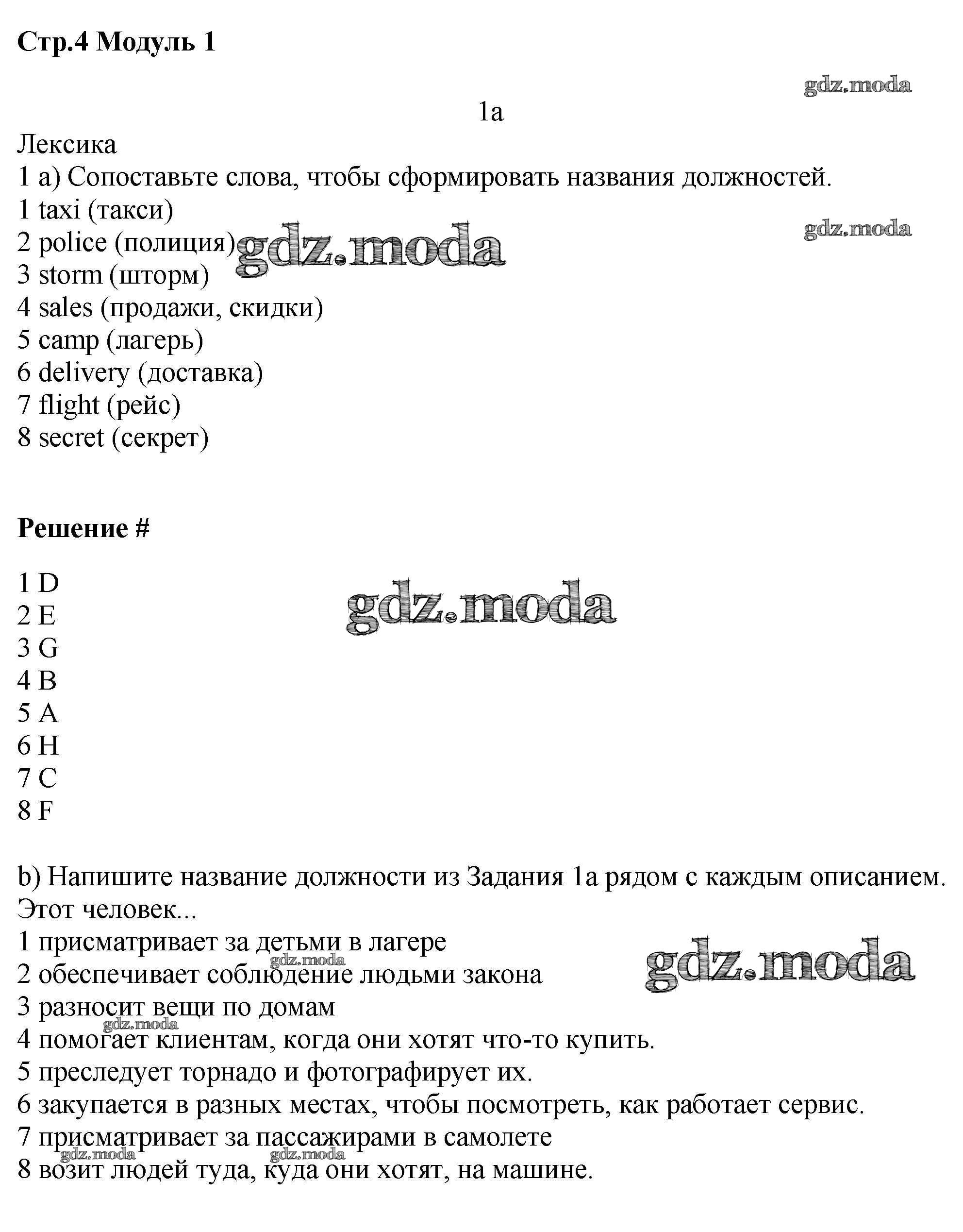 ГДЗ решение к заданию № стр.4 Английский язык 7 класс рабочая тетрадь Starlight Баранова К.М. Просвещение 2017 Углубленный уровень ФГОС бесплатно на гдз.мода!