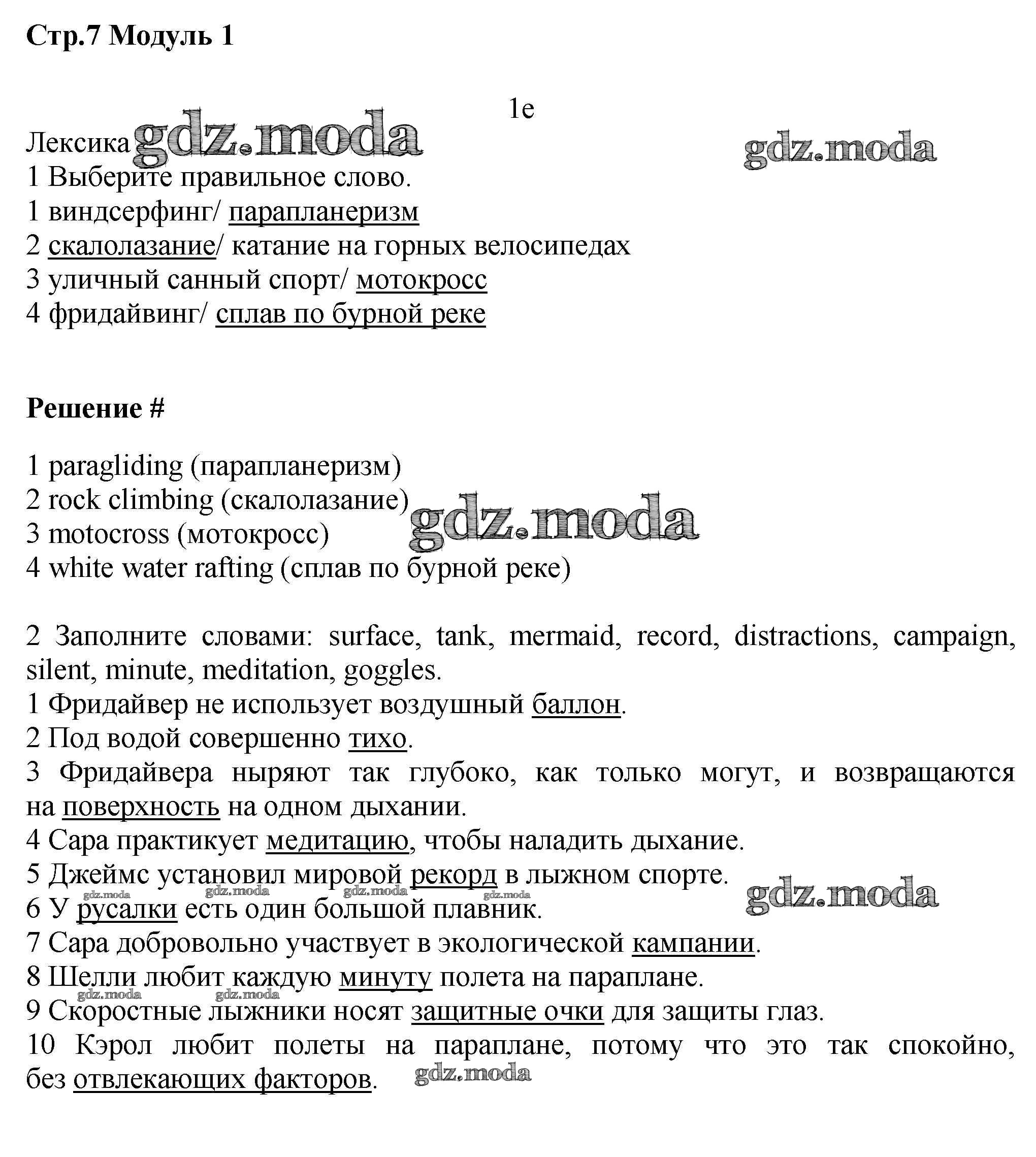 ГДЗ решение к заданию № стр.7 Английский язык 7 класс рабочая тетрадь Starlight Баранова К.М. Просвещение 2017 Углубленный уровень ФГОС бесплатно на гдз.мода!