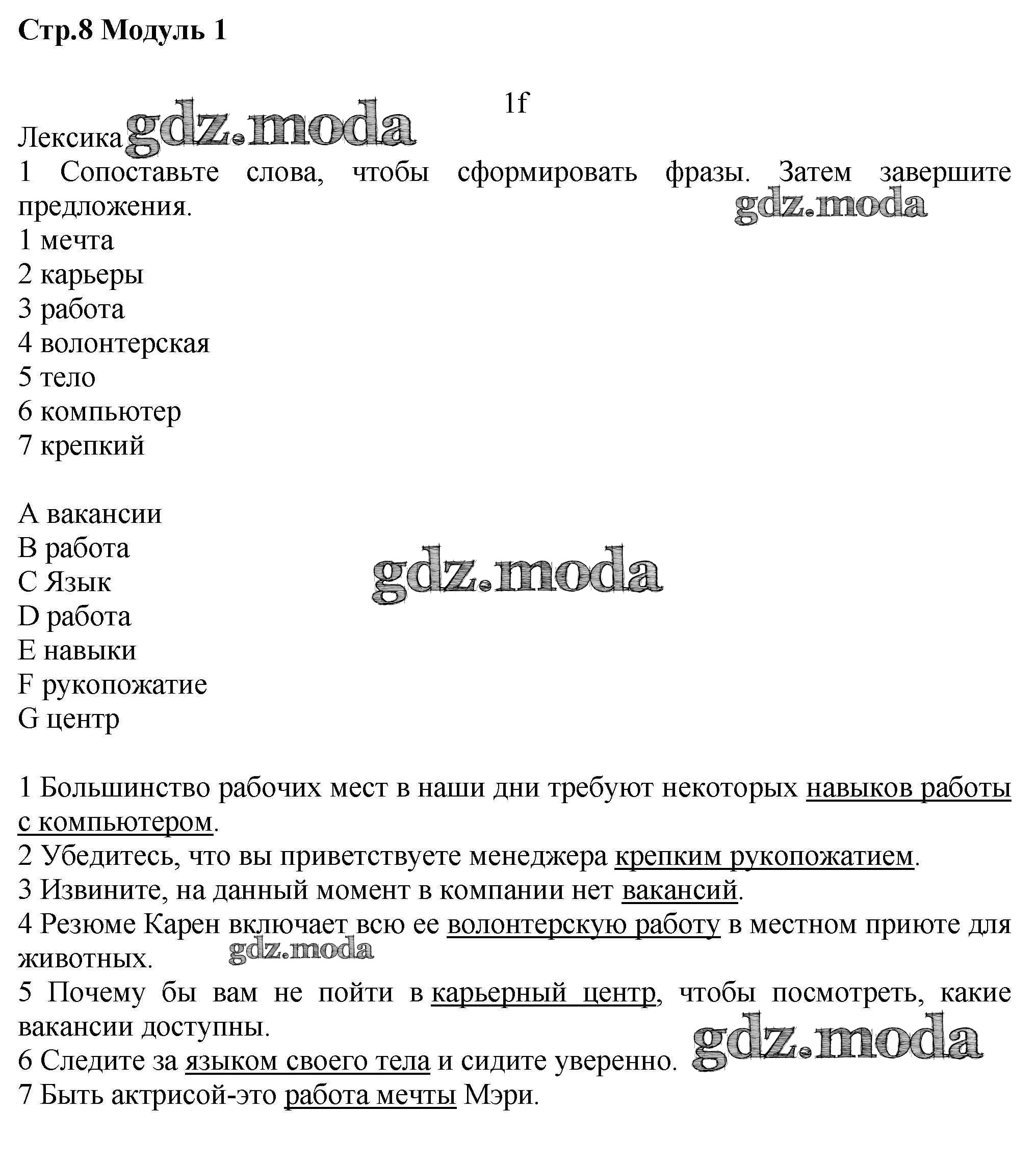 ГДЗ решение к заданию № стр.8 Английский язык 7 класс рабочая тетрадь Starlight Баранова К.М. Просвещение 2017 Углубленный уровень ФГОС бесплатно на гдз.мода!