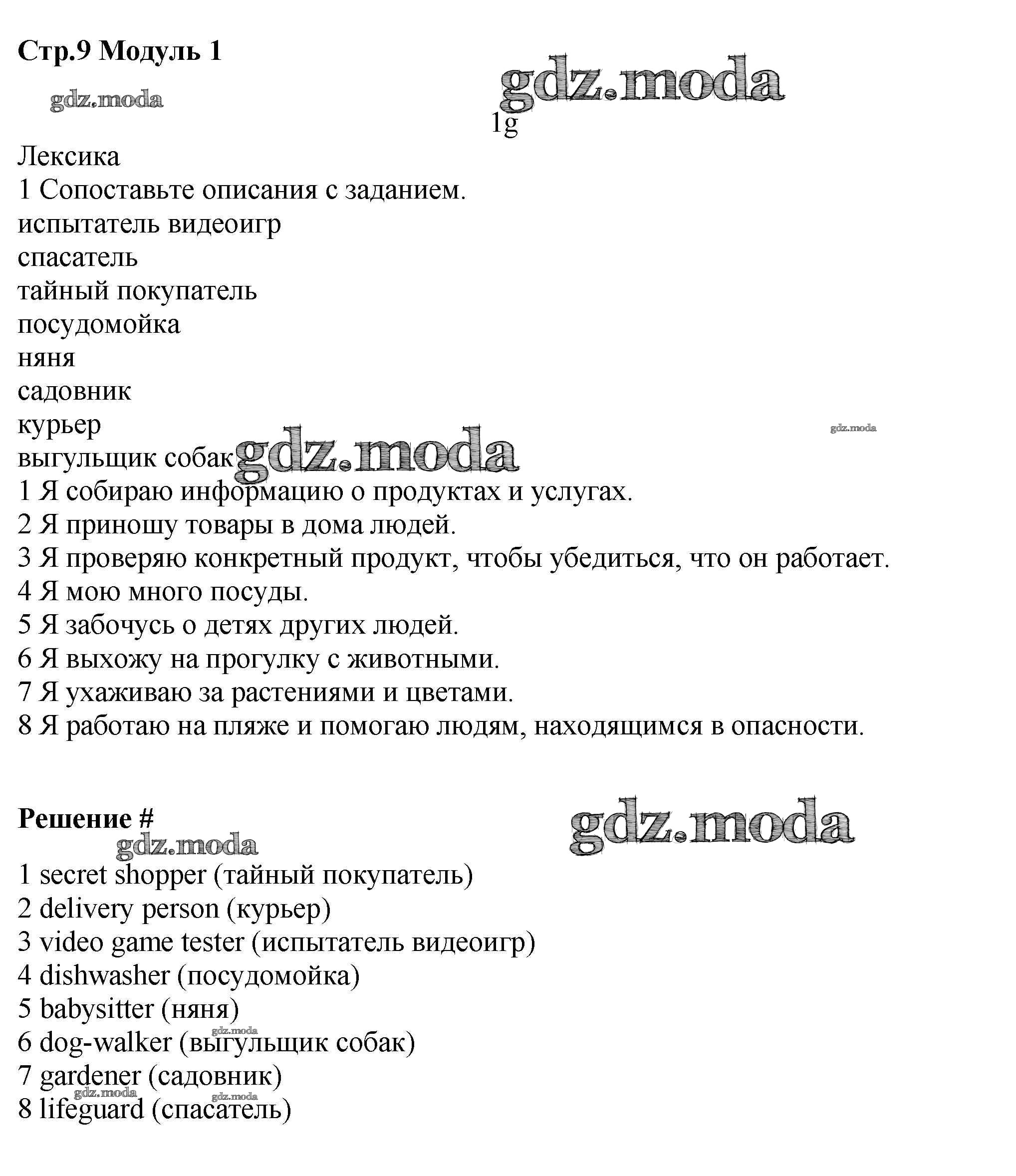 ГДЗ решение к заданию № стр.9 Английский язык 7 класс рабочая тетрадь Starlight Баранова К.М. Просвещение 2017 Углубленный уровень ФГОС бесплатно на гдз.мода!