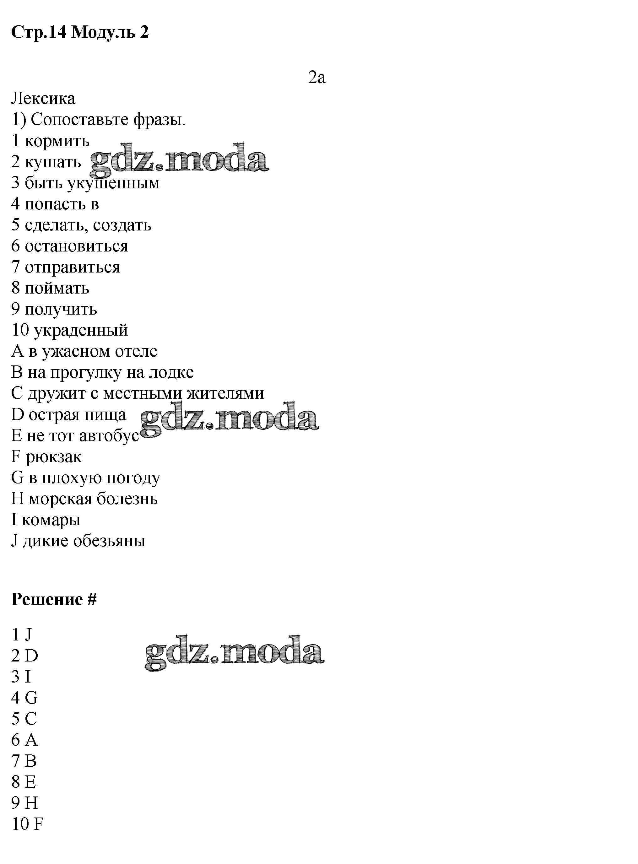 ГДЗ решение к заданию № стр.14 Английский язык 7 класс рабочая тетрадь Starlight Баранова К.М. Просвещение 2017 Углубленный уровень ФГОС бесплатно на гдз.мода!