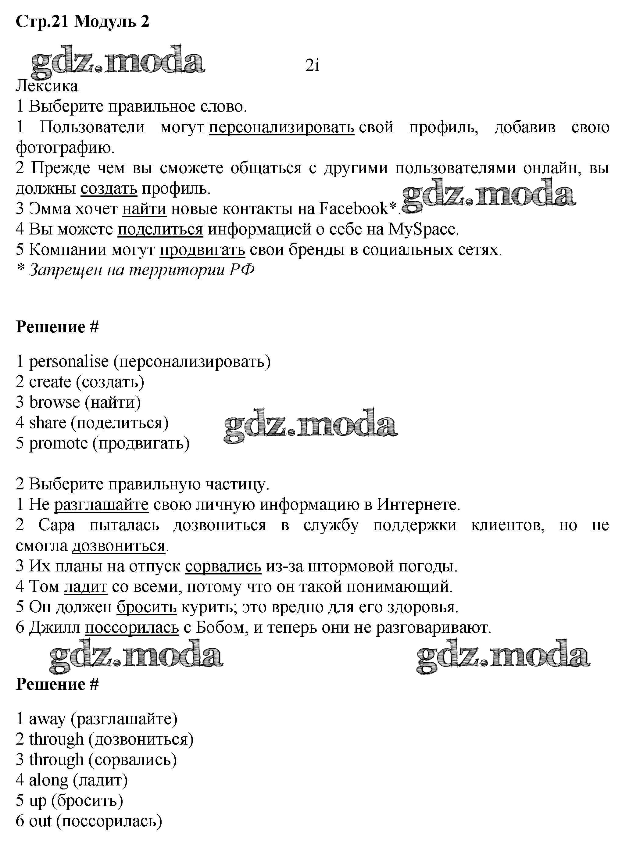 ГДЗ решение к заданию № стр.21 Английский язык 7 класс рабочая тетрадь Starlight Баранова К.М. Просвещение 2017 Углубленный уровень ФГОС бесплатно на гдз.мода!