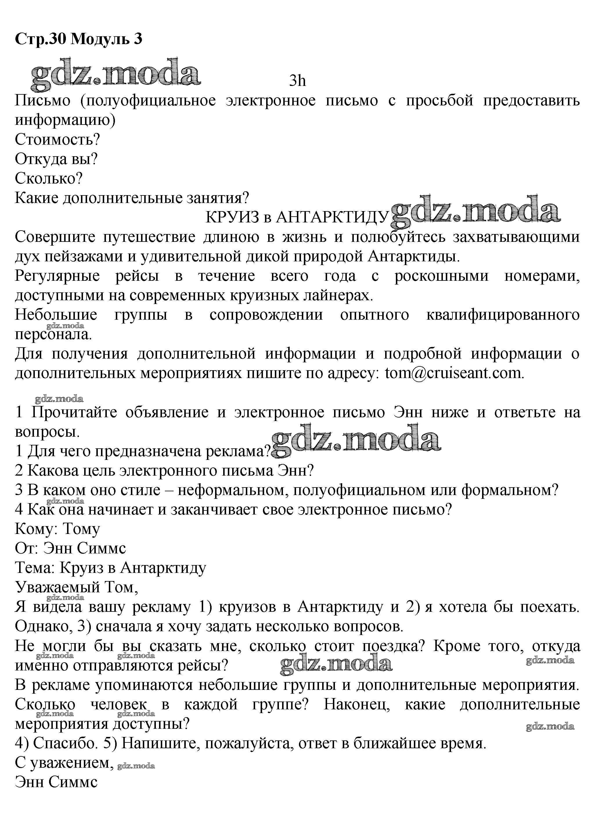 ГДЗ решение к заданию № стр.30 Английский язык 7 класс рабочая тетрадь Starlight Баранова К.М. Просвещение 2017 Углубленный уровень ФГОС бесплатно на гдз.мода!