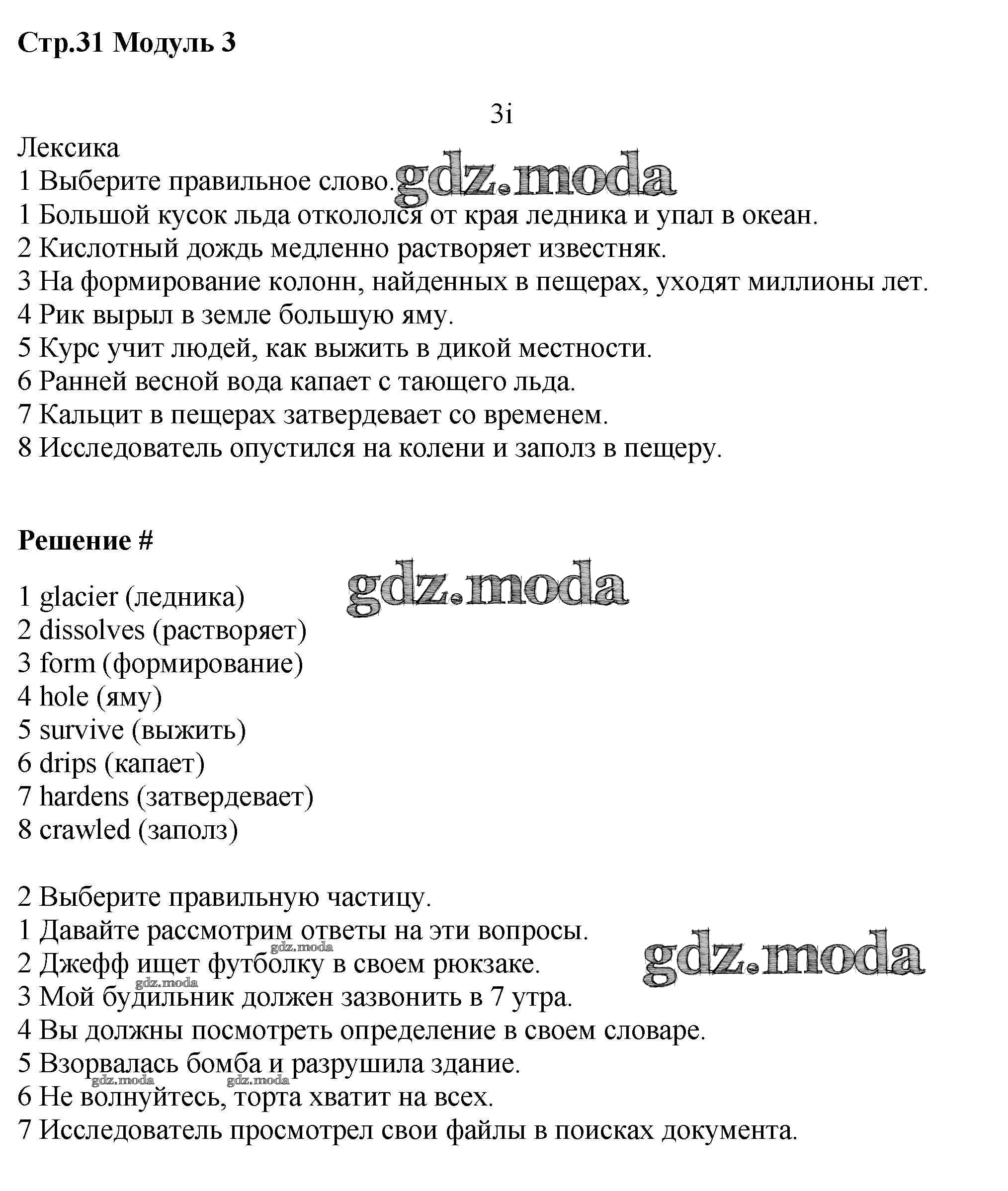 ГДЗ решение к заданию № стр.31 Английский язык 7 класс рабочая тетрадь Starlight Баранова К.М. Просвещение 2017 Углубленный уровень ФГОС бесплатно на гдз.мода!