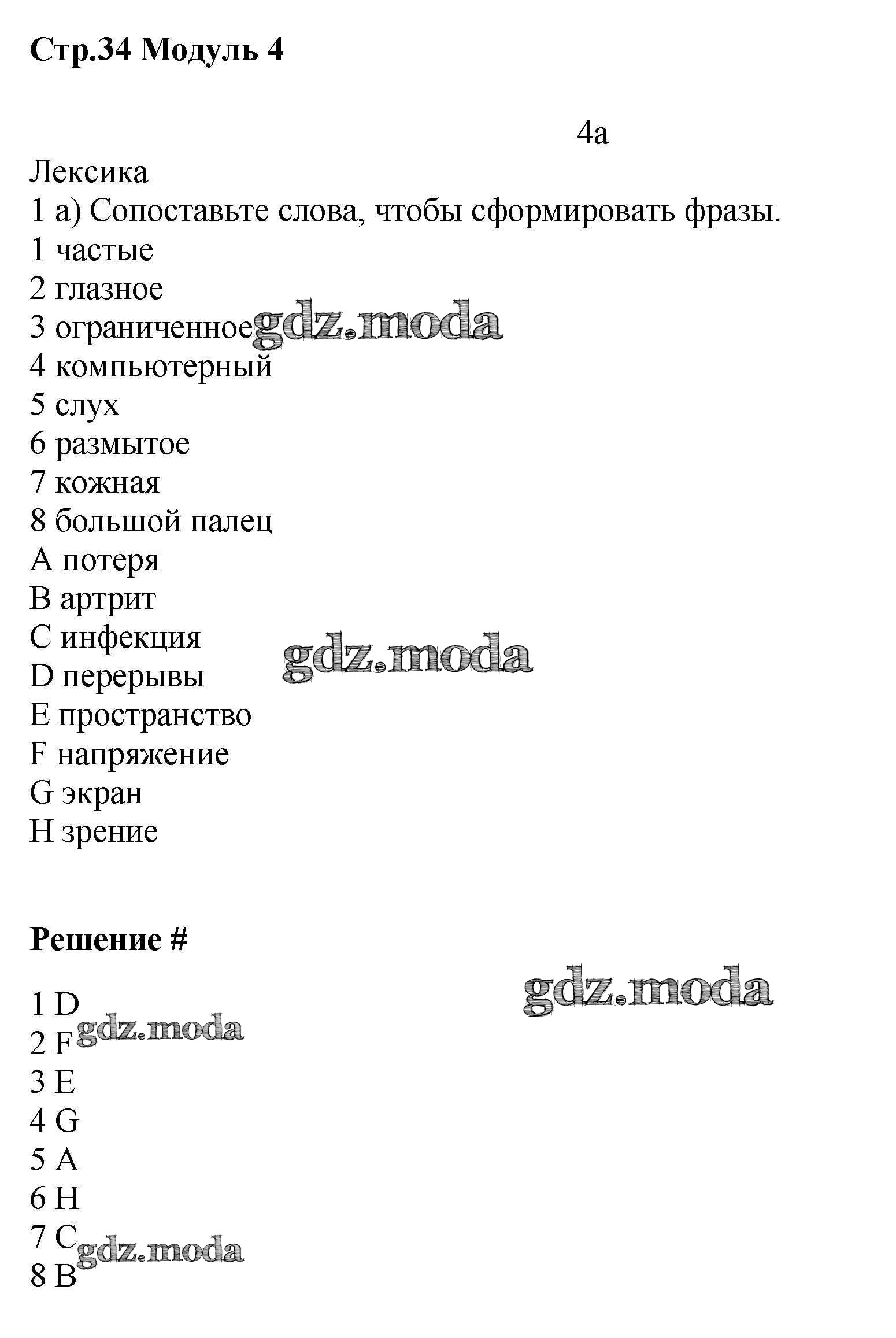ГДЗ решение к заданию № стр.34 Английский язык 7 класс рабочая тетрадь Starlight Баранова К.М. Просвещение 2017 Углубленный уровень ФГОС бесплатно на гдз.мода!
