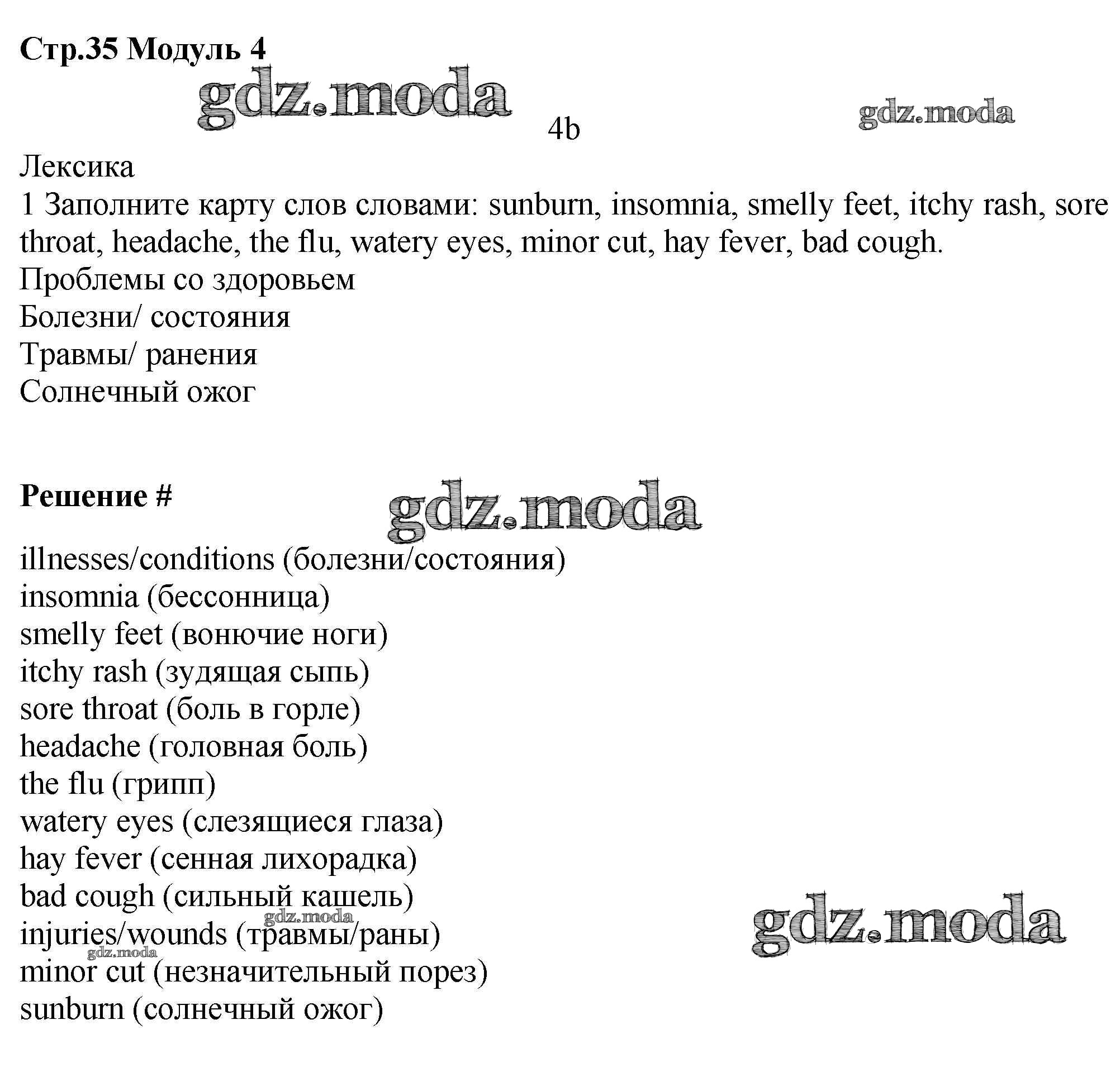 ГДЗ решение к заданию № стр.35 Английский язык 7 класс рабочая тетрадь Starlight Баранова К.М. Просвещение 2017 Углубленный уровень ФГОС бесплатно на гдз.мода!