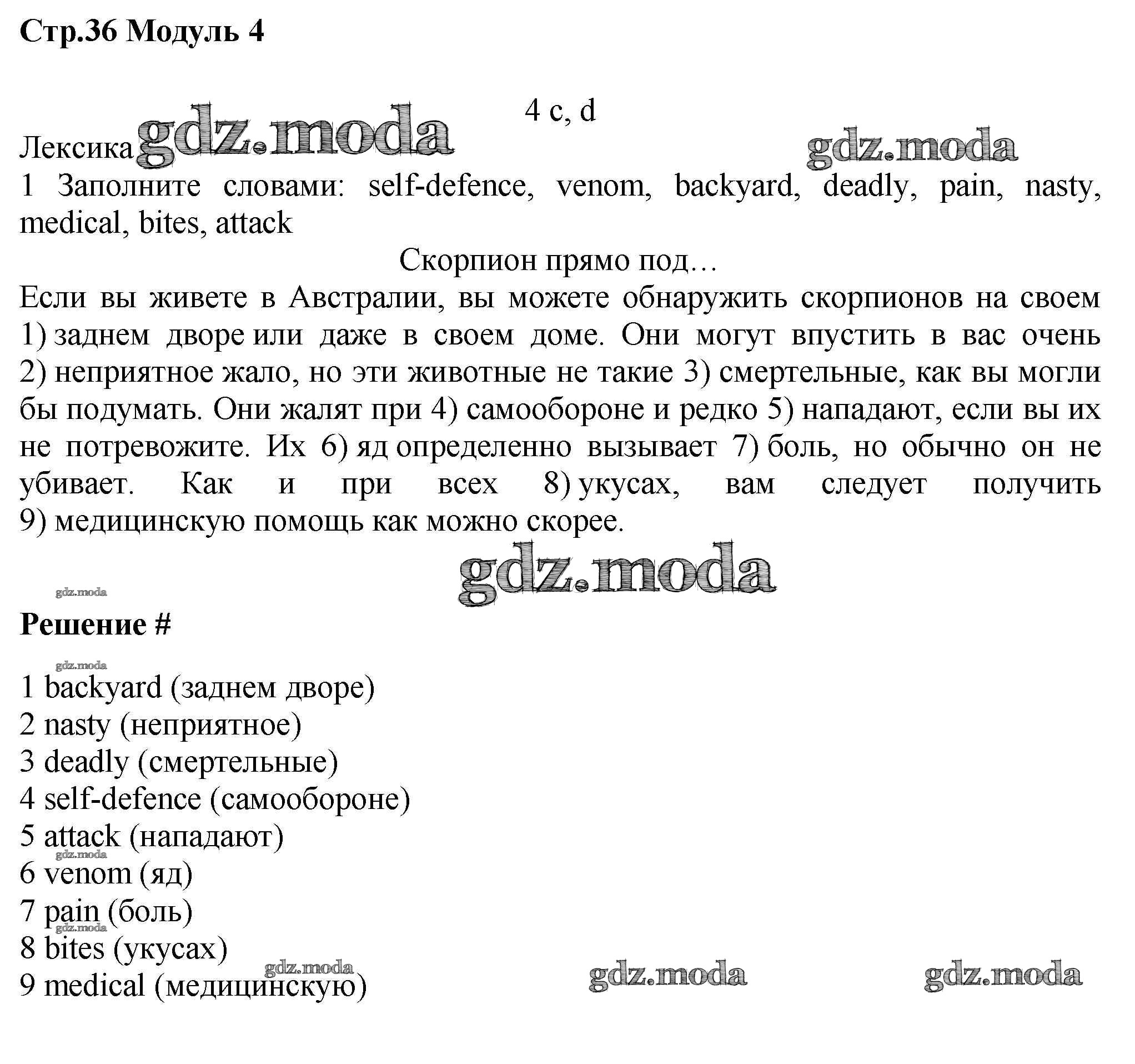 ГДЗ решение к заданию № стр.36 Английский язык 7 класс рабочая тетрадь Starlight Баранова К.М. Просвещение 2017 Углубленный уровень ФГОС бесплатно на гдз.мода!