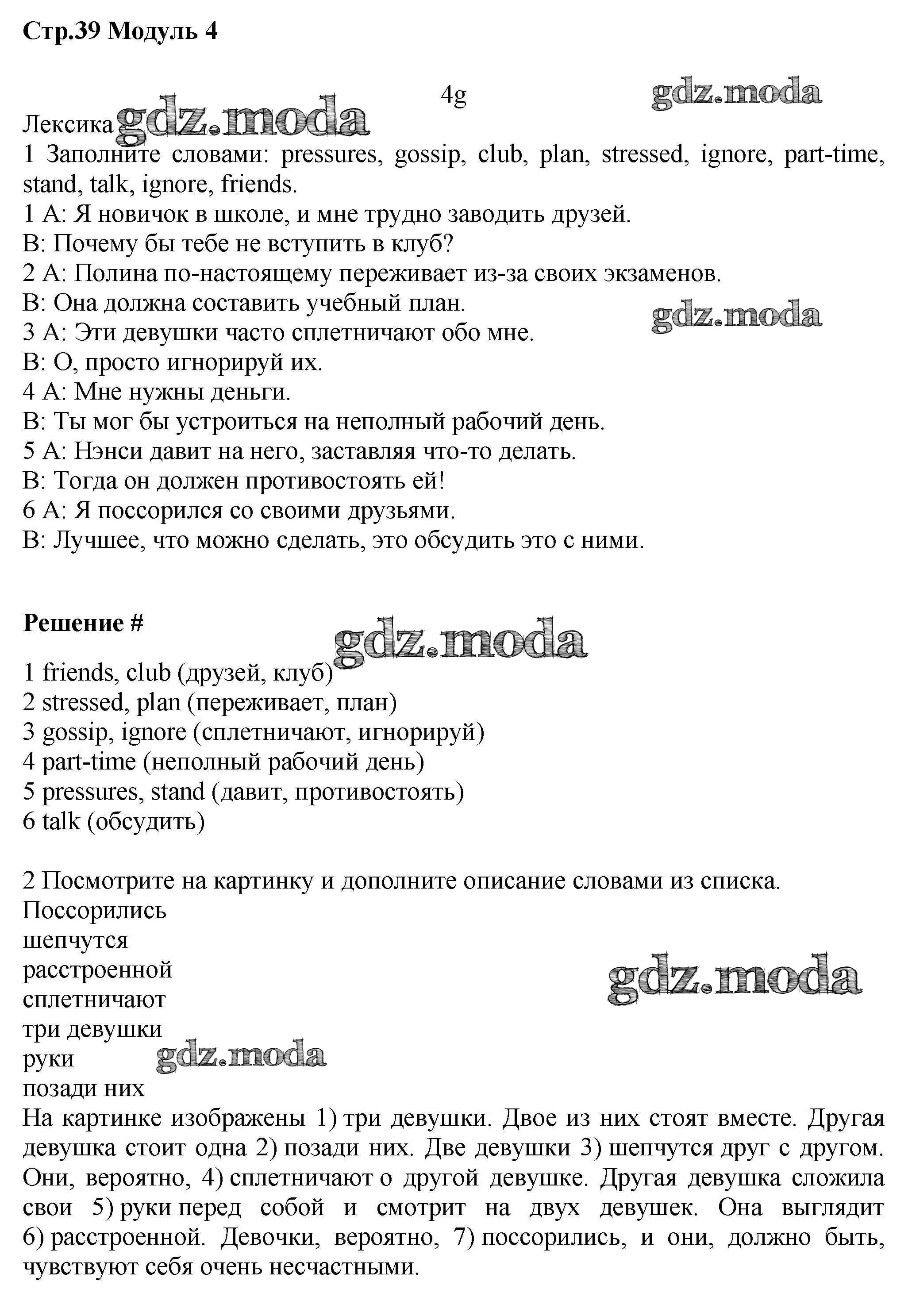 ГДЗ решение к заданию № стр.39 Английский язык 7 класс рабочая тетрадь Starlight Баранова К.М. Просвещение 2017 Углубленный уровень ФГОС бесплатно на гдз.мода!