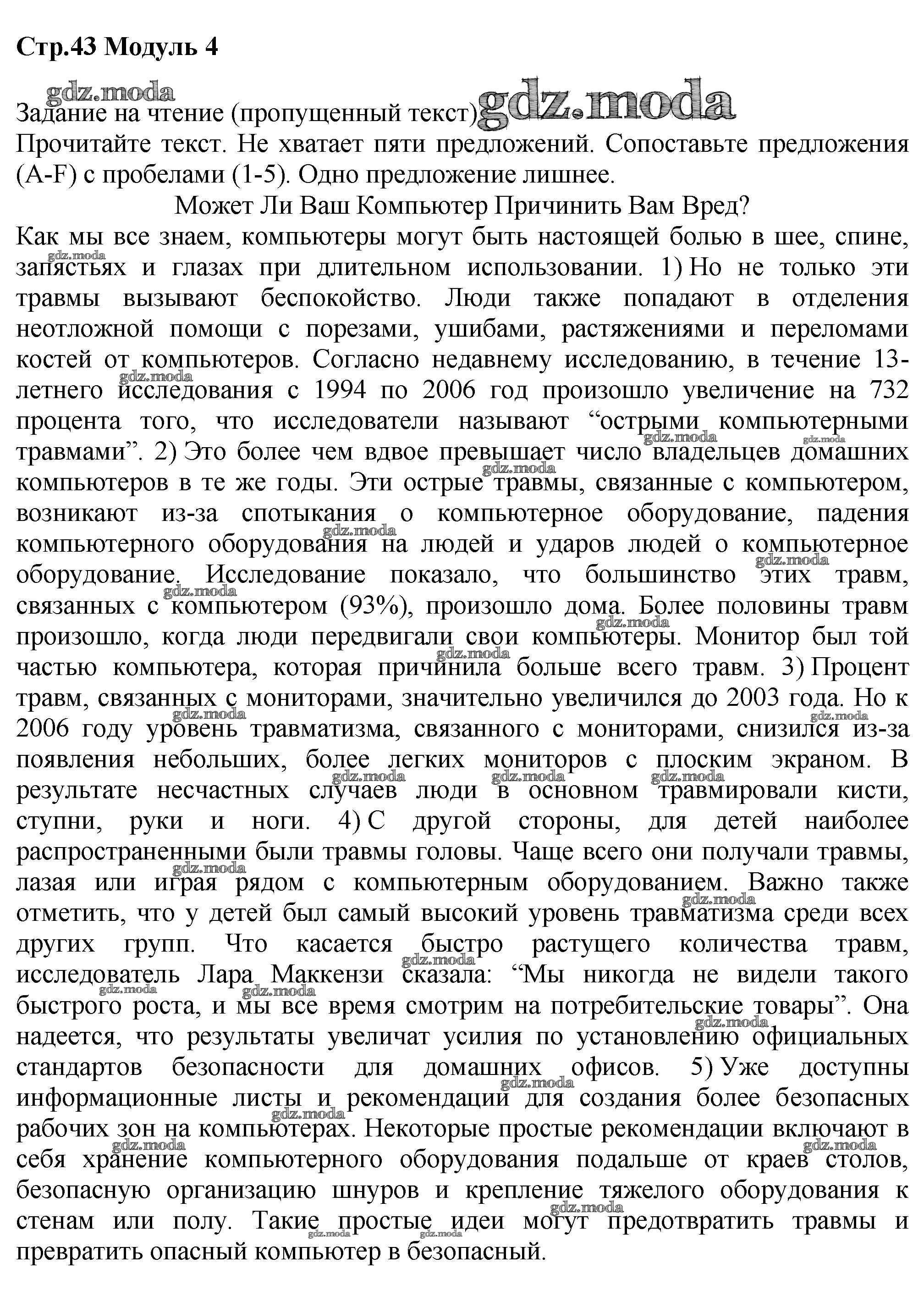 ГДЗ решение к заданию № стр.43 Английский язык 7 класс рабочая тетрадь Starlight Баранова К.М. Просвещение 2017 Углубленный уровень ФГОС бесплатно на гдз.мода!