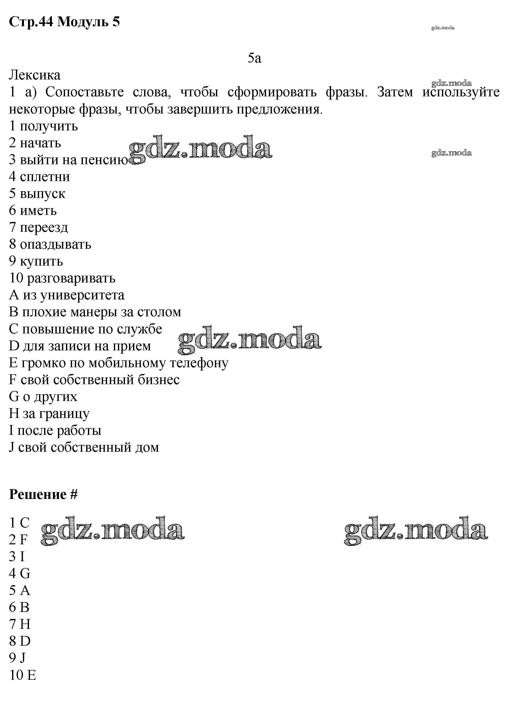 ГДЗ решение к заданию № стр.44 Английский язык 7 класс рабочая тетрадь Starlight Баранова К.М. Просвещение 2017 Углубленный уровень ФГОС бесплатно на гдз.мода!