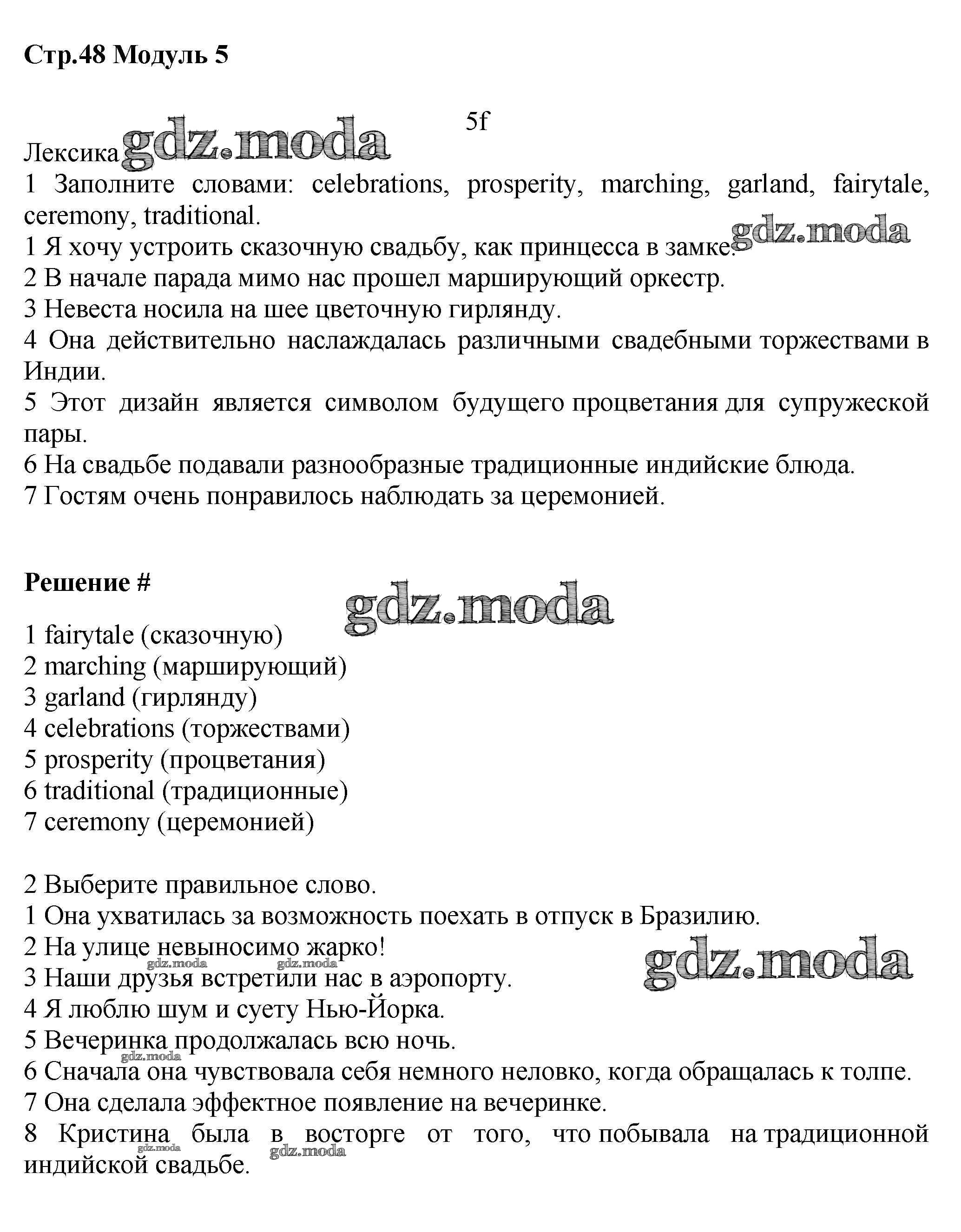 ГДЗ решение к заданию № стр.48 Английский язык 7 класс рабочая тетрадь Starlight Баранова К.М. Просвещение 2017 Углубленный уровень ФГОС бесплатно на гдз.мода!