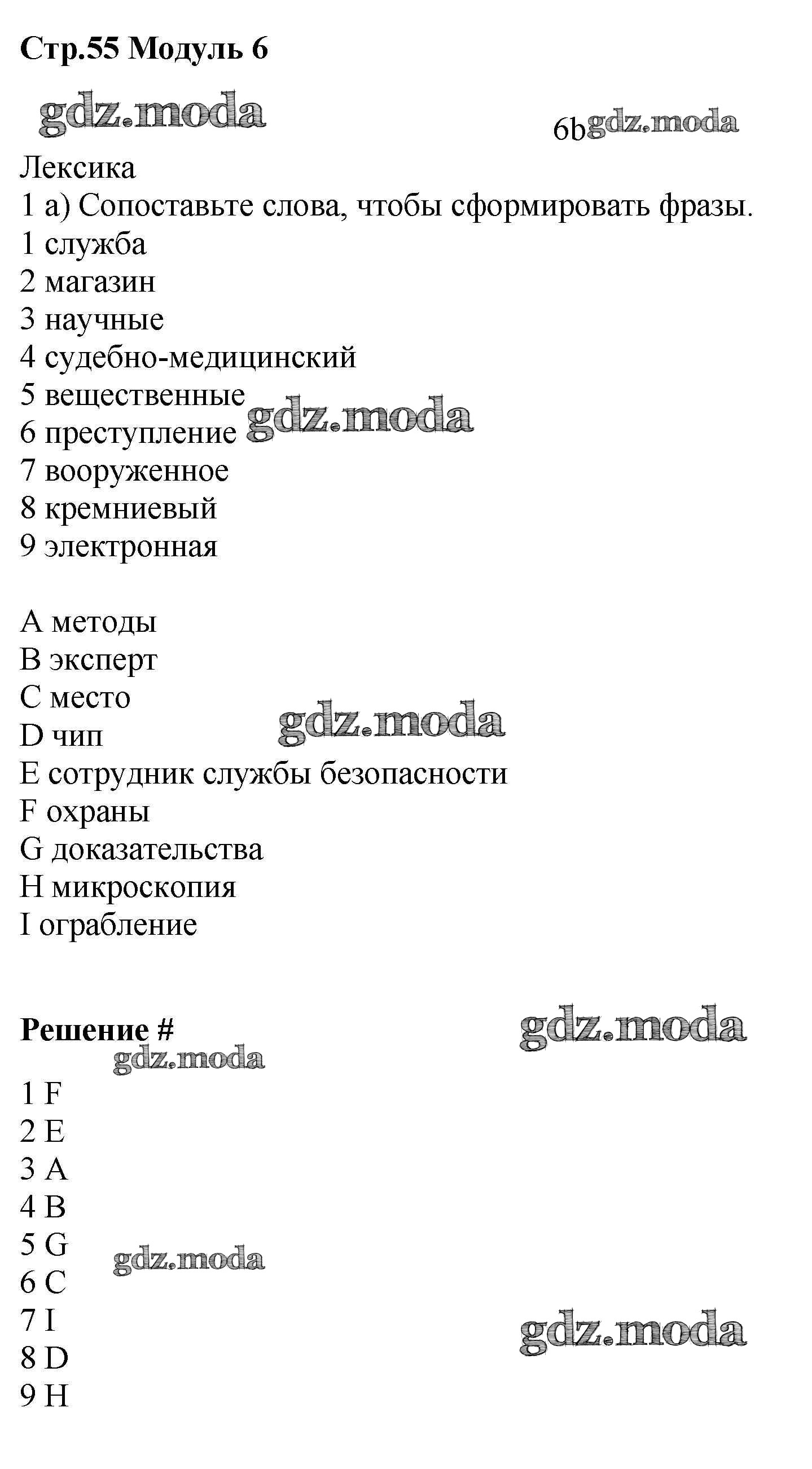 ГДЗ решение к заданию № стр.55 Английский язык 7 класс рабочая тетрадь Starlight Баранова К.М. Просвещение 2017 Углубленный уровень ФГОС бесплатно на гдз.мода!