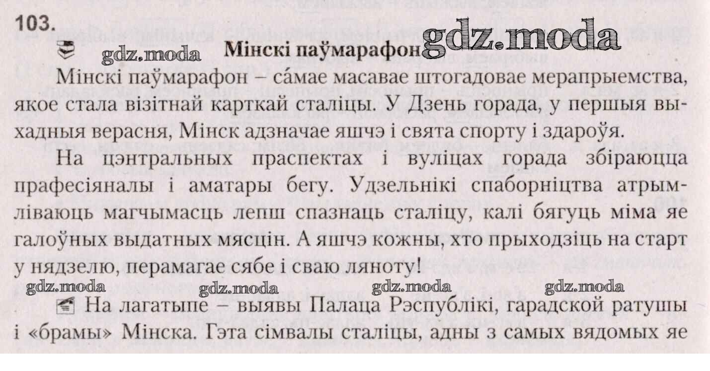 ГДЗ решение к заданию № 103 Белоруская мова 7 класс Валочка Г. М. Национальный институт образования 2020 ФГОС бесплатно на гдз.мода!