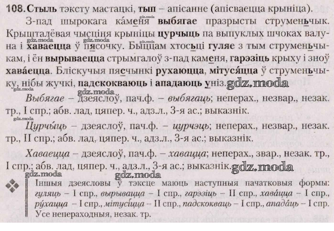 ГДЗ решение к заданию № 108 Белоруская мова 7 класс Валочка Г. М. Национальный институт образования 2020 ФГОС бесплатно на гдз.мода!