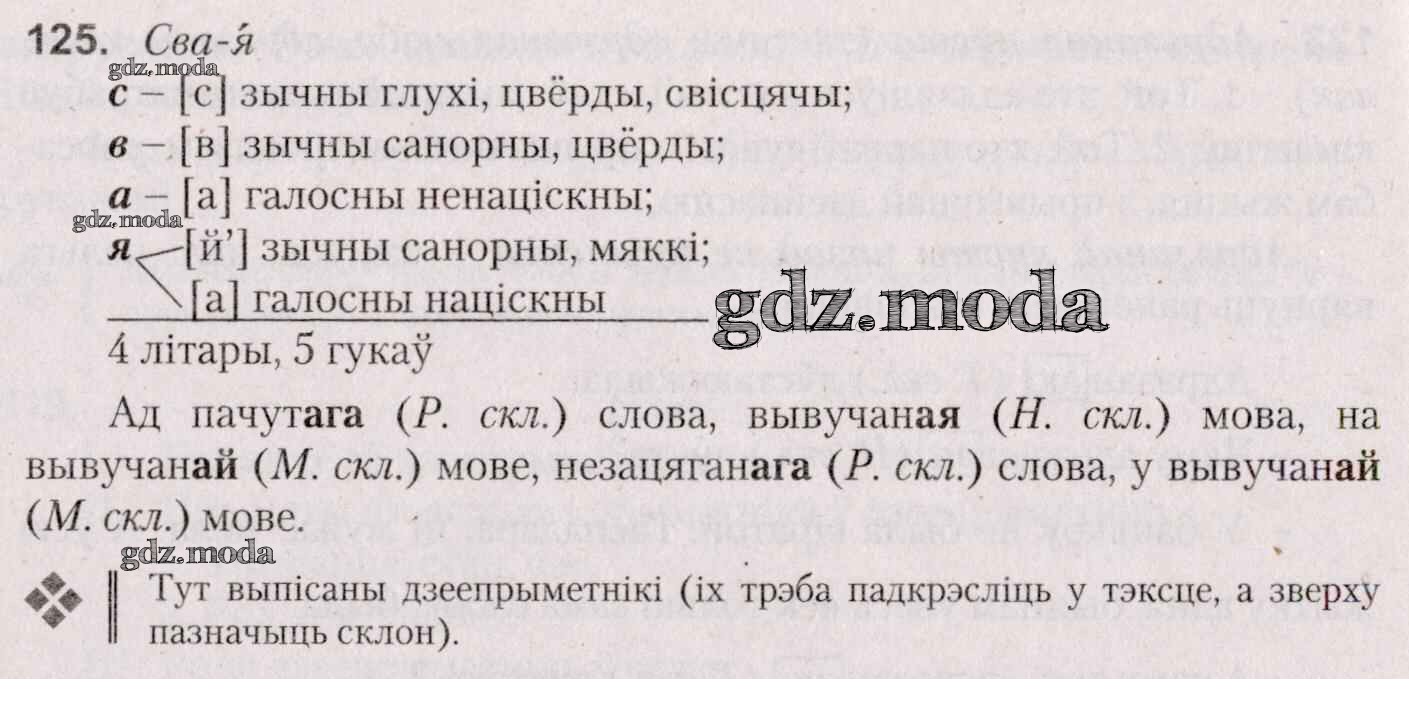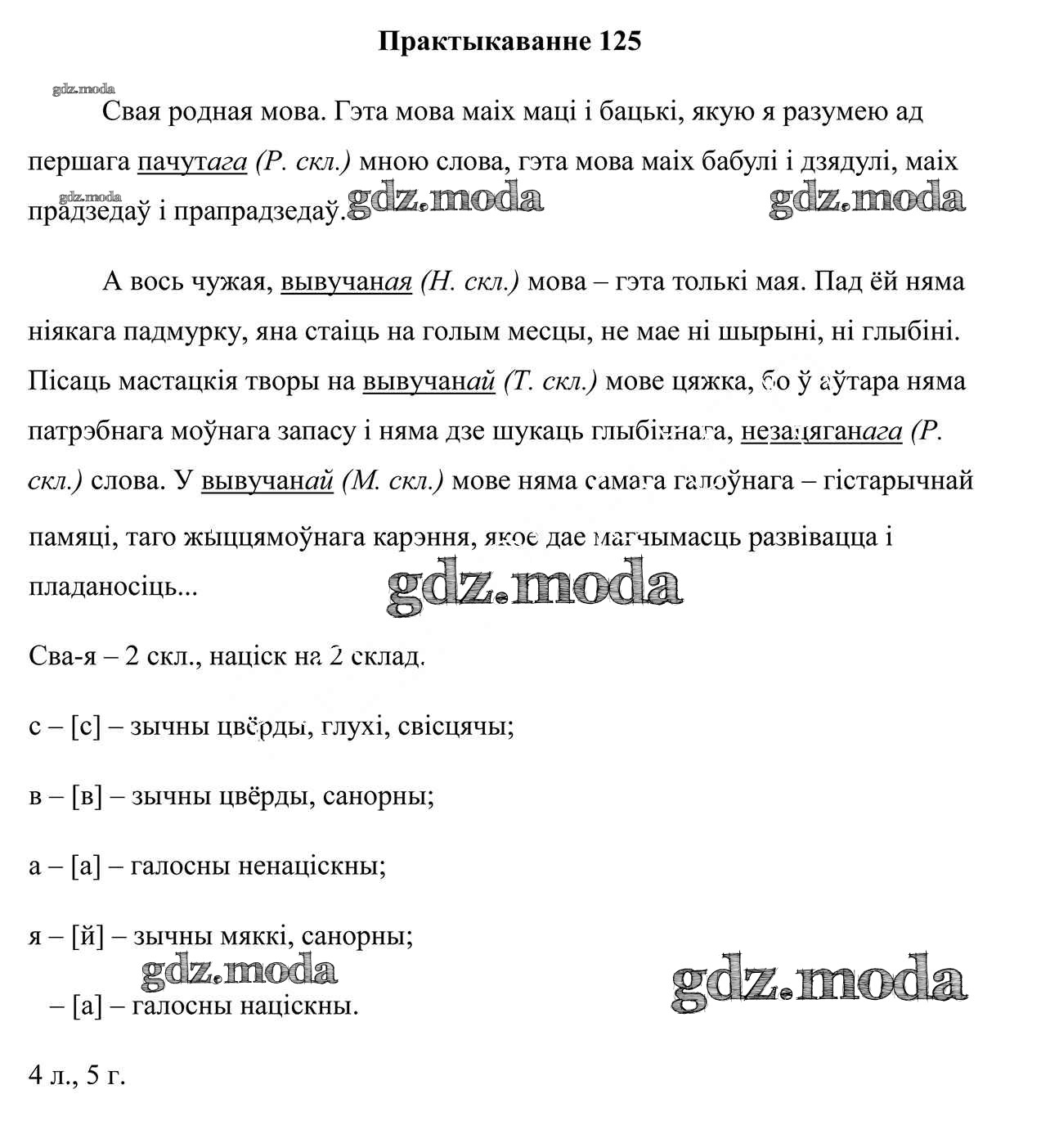 ГДЗ решение к заданию № 125 Белоруская мова 7 класс Валочка Г. М. Национальный институт образования 2020 ФГОС бесплатно на гдз.мода!