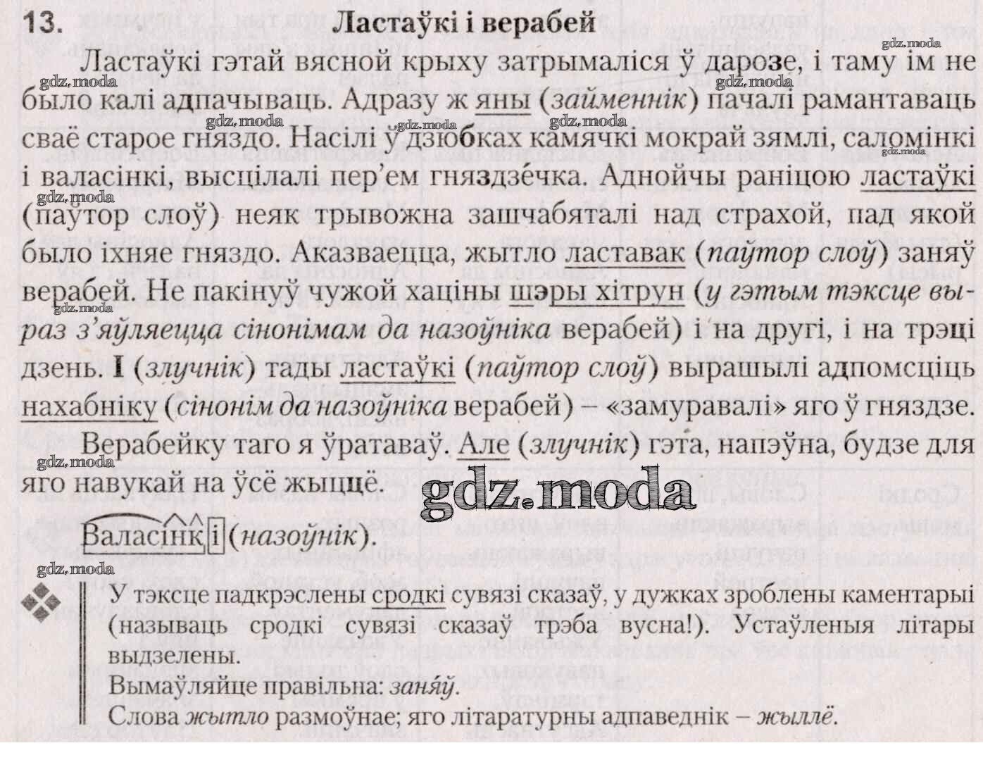ГДЗ решение к заданию № 13 Белоруская мова 7 класс Валочка Г. М. Национальный институт образования 2020 ФГОС бесплатно на гдз.мода!