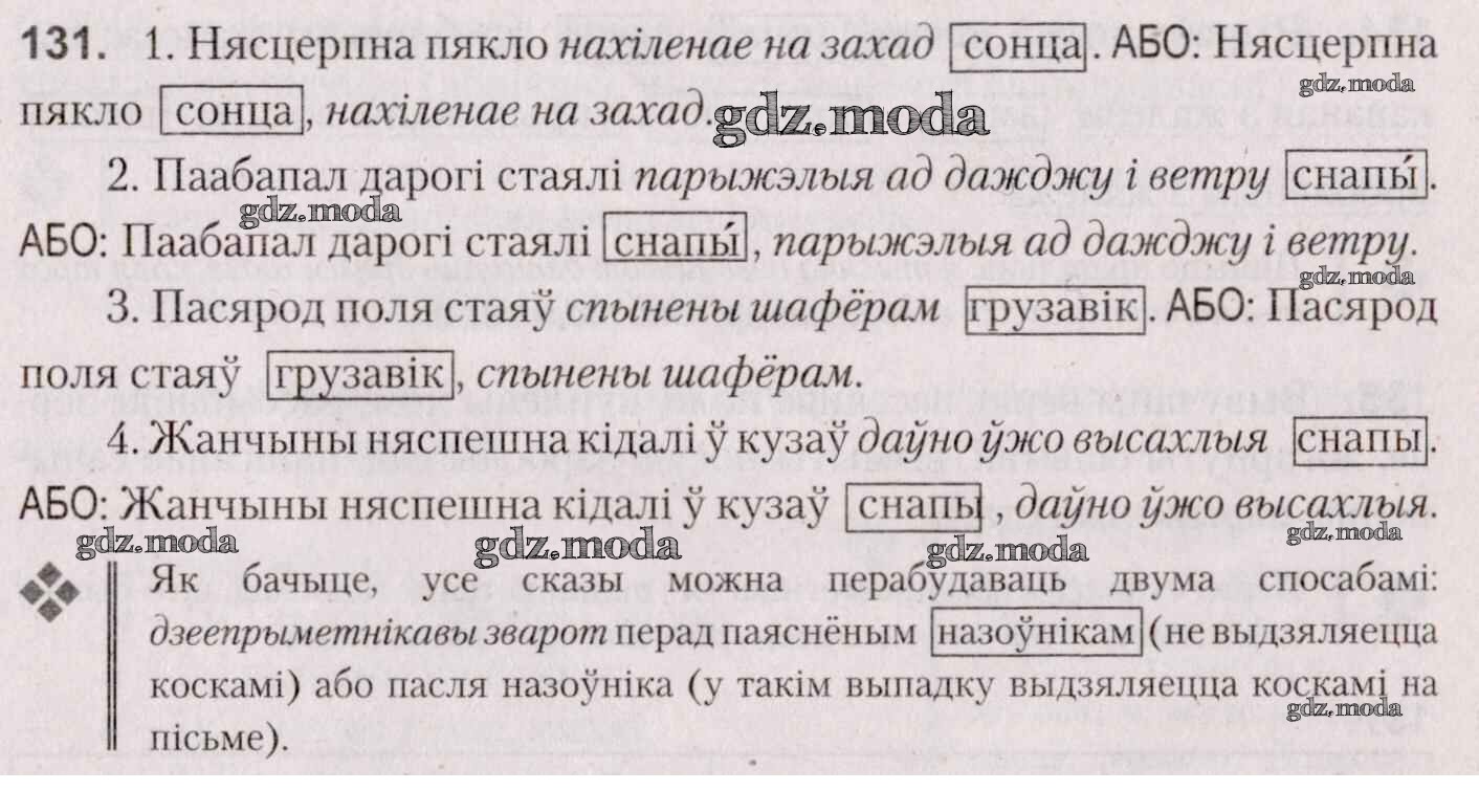 ГДЗ решение к заданию № 131 Белоруская мова 7 класс Валочка Г. М. Национальный институт образования 2020 ФГОС бесплатно на гдз.мода!