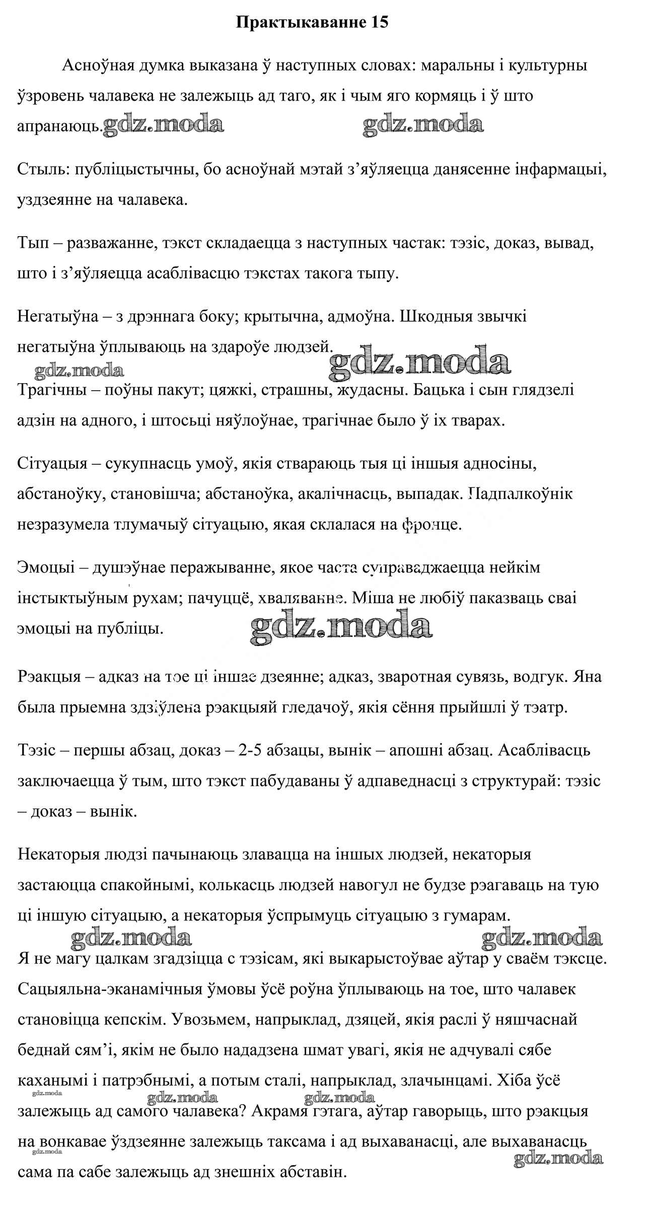 ГДЗ решение к заданию № 15 Белоруская мова 7 класс Валочка Г. М. Национальный институт образования 2020 ФГОС бесплатно на гдз.мода!