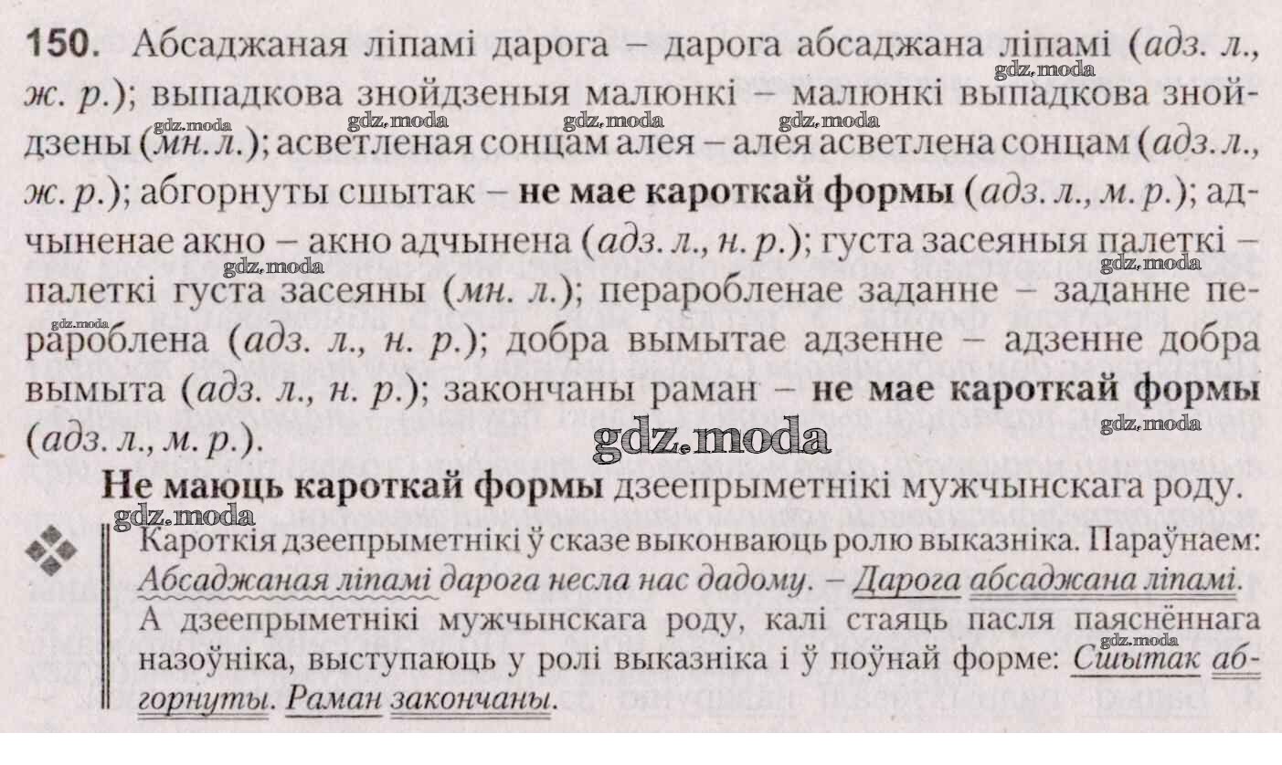 ГДЗ решение к заданию № 150 Белоруская мова 7 класс Валочка Г. М. Национальный институт образования 2020 ФГОС бесплатно на гдз.мода!