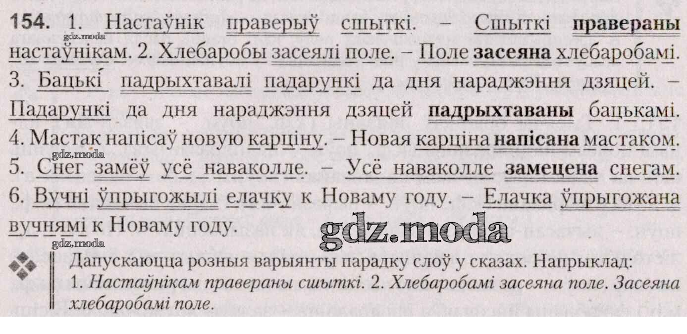 ГДЗ решение к заданию № 154 Белоруская мова 7 класс Валочка Г. М. Национальный институт образования 2020 ФГОС бесплатно на гдз.мода!