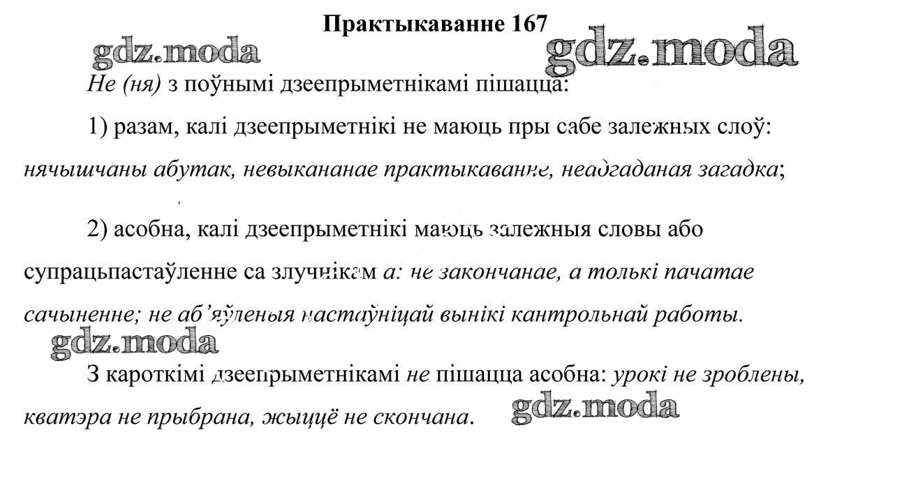ГДЗ решение к заданию № 167 Белоруская мова 7 класс Валочка Г. М. Национальный институт образования 2020 ФГОС бесплатно на гдз.мода!