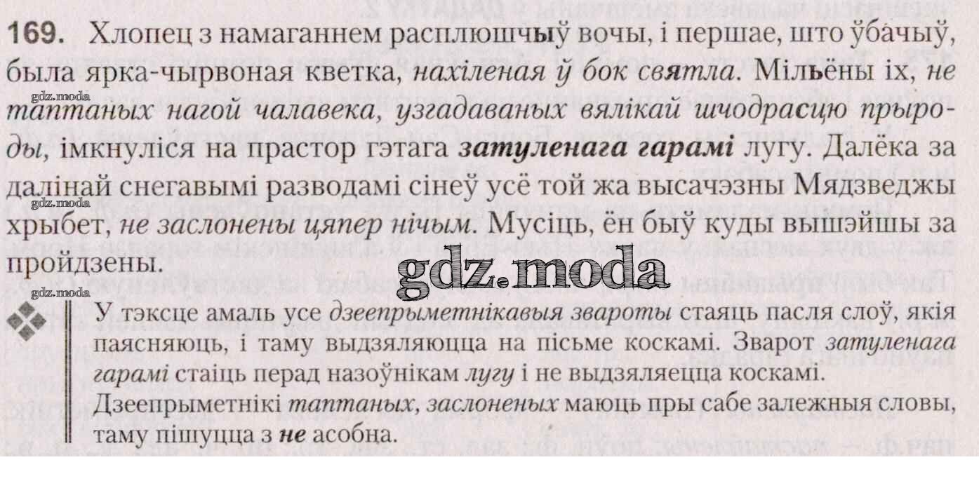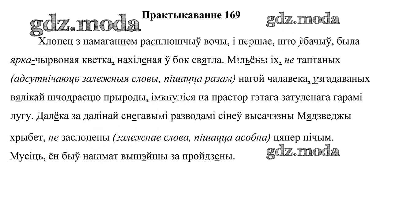 ГДЗ решение к заданию № 169 Белоруская мова 7 класс Валочка Г. М. Национальный институт образования 2020 ФГОС бесплатно на гдз.мода!