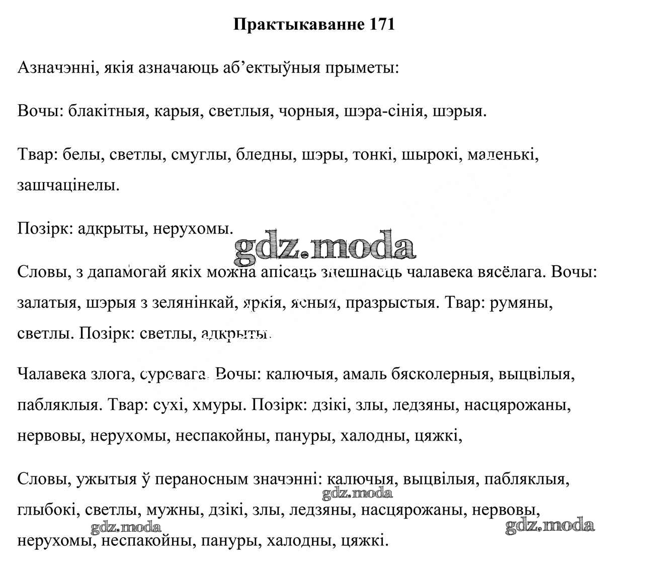 ГДЗ решение к заданию № 171 Белоруская мова 7 класс Валочка Г. М. Национальный институт образования 2020 ФГОС бесплатно на гдз.мода!