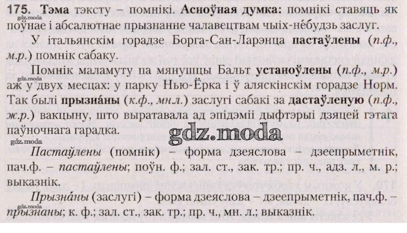 ГДЗ решение к заданию № 175 Белоруская мова 7 класс Валочка Г. М. Национальный институт образования 2020 ФГОС бесплатно на гдз.мода!
