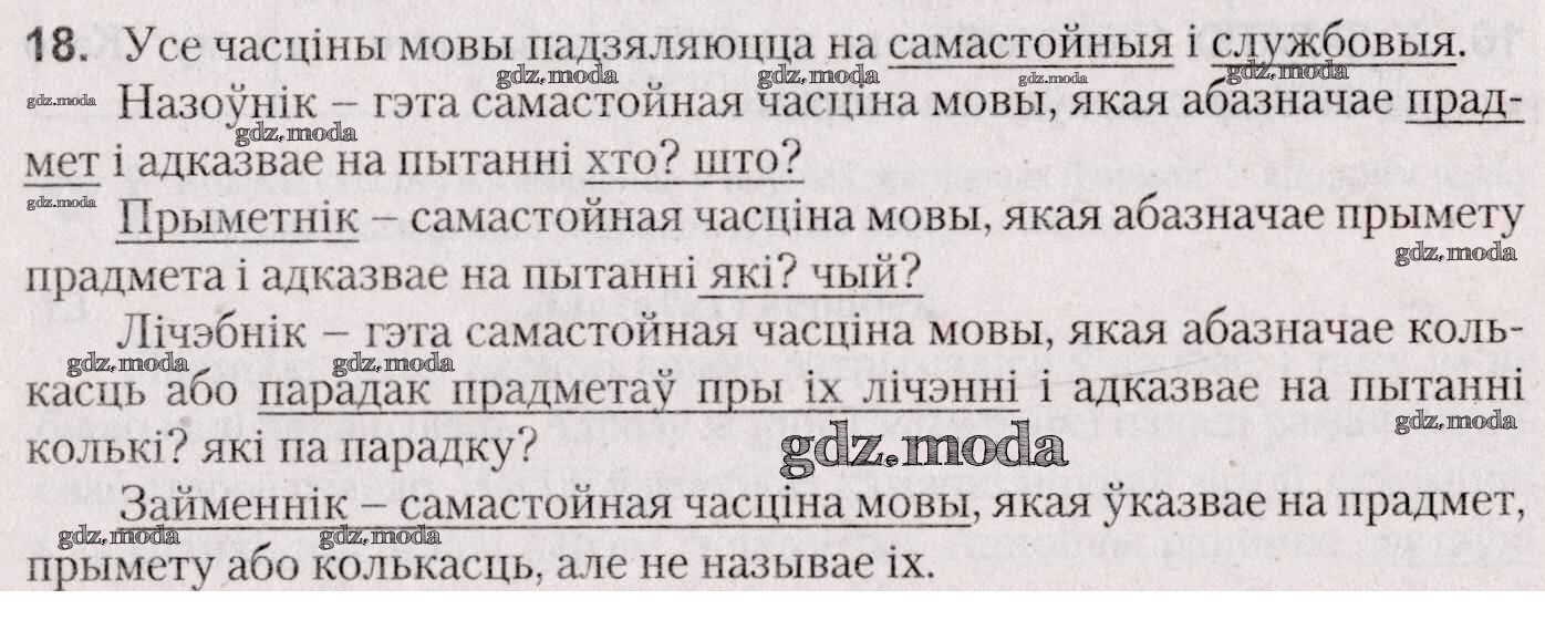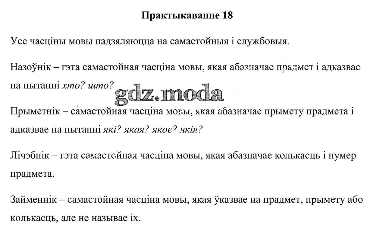 ГДЗ решение к заданию № 18 Белоруская мова 7 класс Валочка Г. М. Национальный институт образования 2020 ФГОС бесплатно на гдз.мода!
