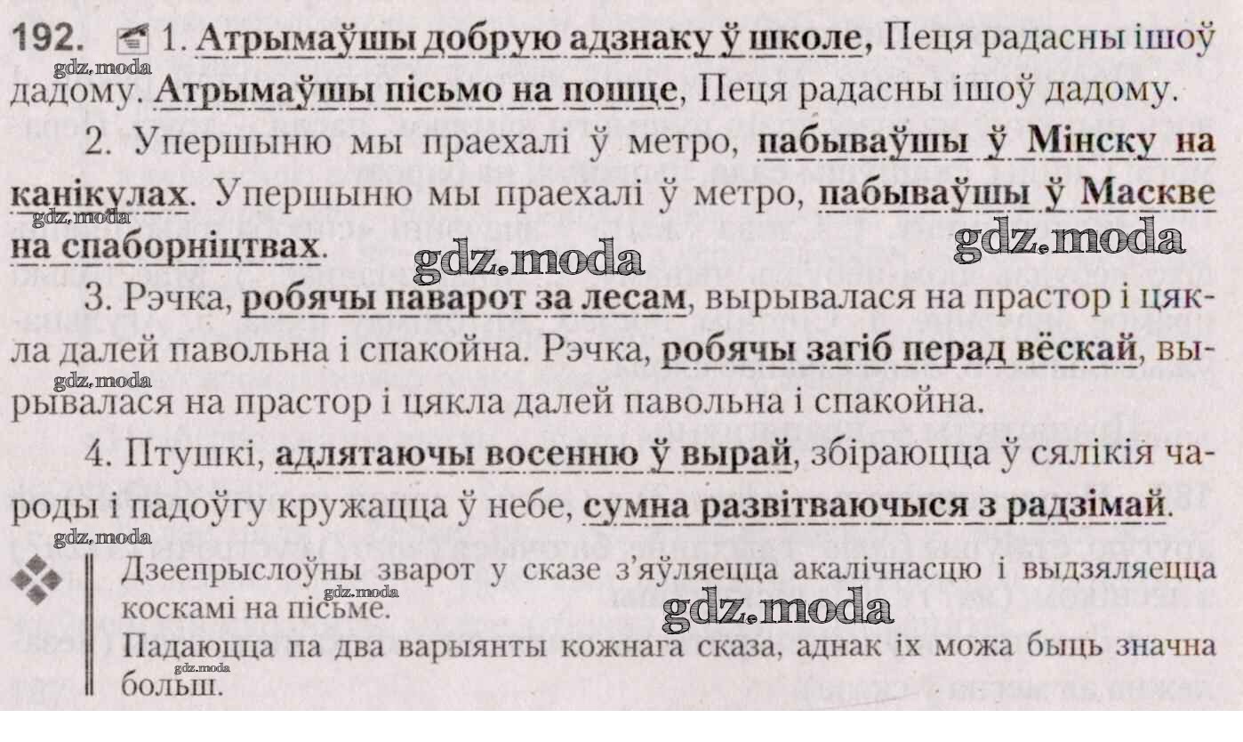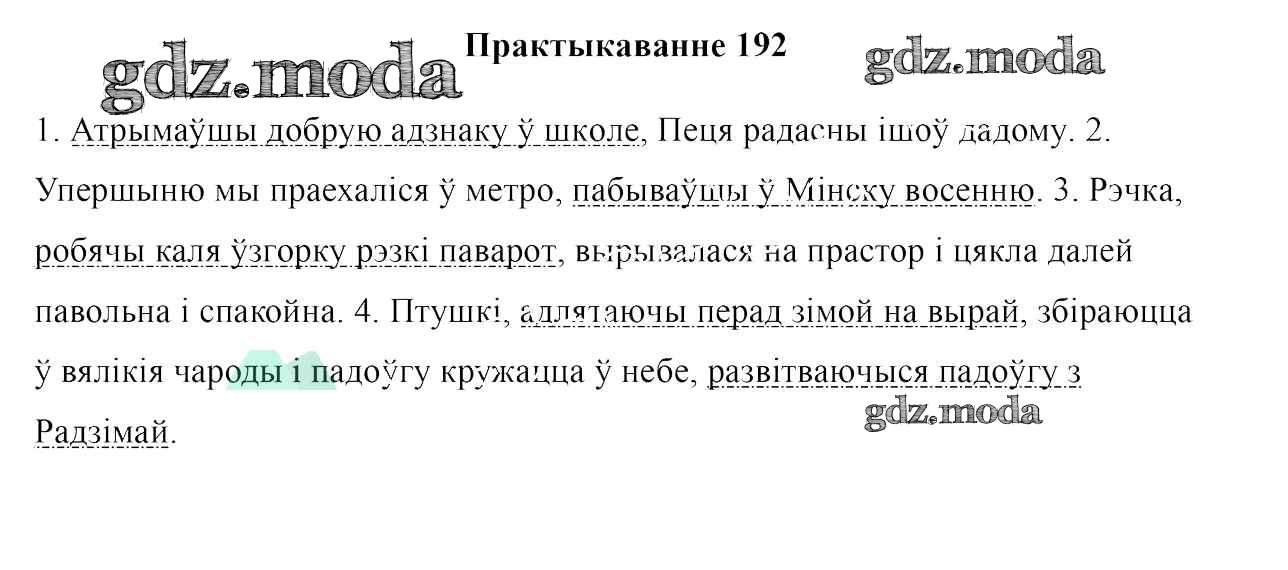 ГДЗ решение к заданию № 192 Белоруская мова 7 класс Валочка Г. М. Национальный институт образования 2020 ФГОС бесплатно на гдз.мода!