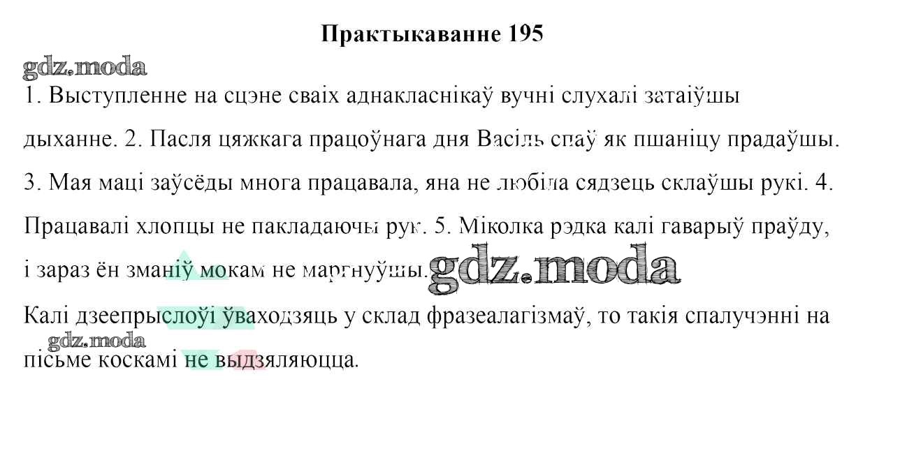 ГДЗ решение к заданию № 195 Белоруская мова 7 класс Валочка Г. М. Национальный институт образования 2020 ФГОС бесплатно на гдз.мода!