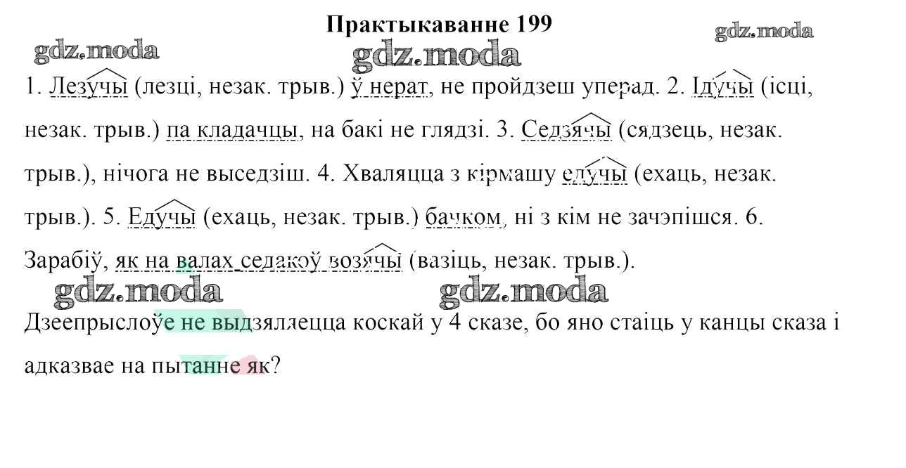 ГДЗ решение к заданию № 199 Белоруская мова 7 класс Валочка Г. М. Национальный институт образования 2020 ФГОС бесплатно на гдз.мода!