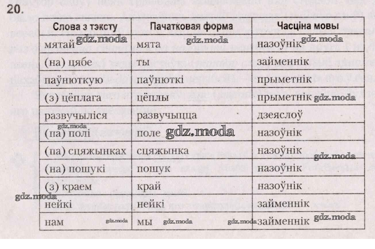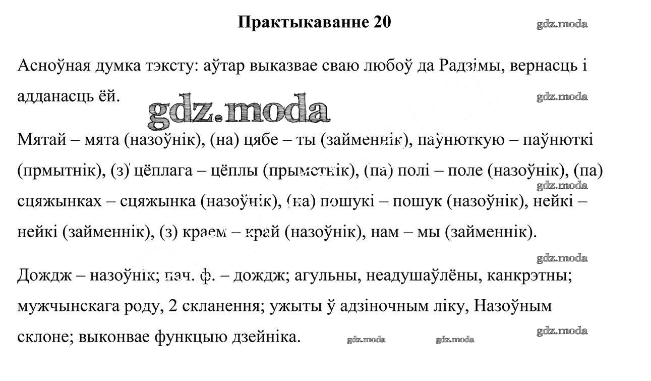ГДЗ решение к заданию № 20 Белоруская мова 7 класс Валочка Г. М. Национальный институт образования 2020 ФГОС бесплатно на гдз.мода!