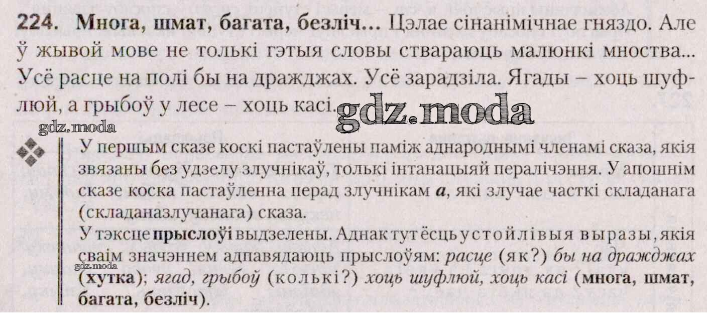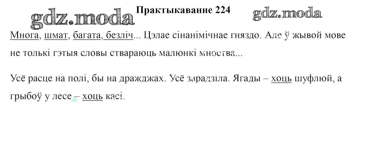 ГДЗ решение к заданию № 224 Белоруская мова 7 класс Валочка Г. М. Национальный институт образования 2020 ФГОС бесплатно на гдз.мода!