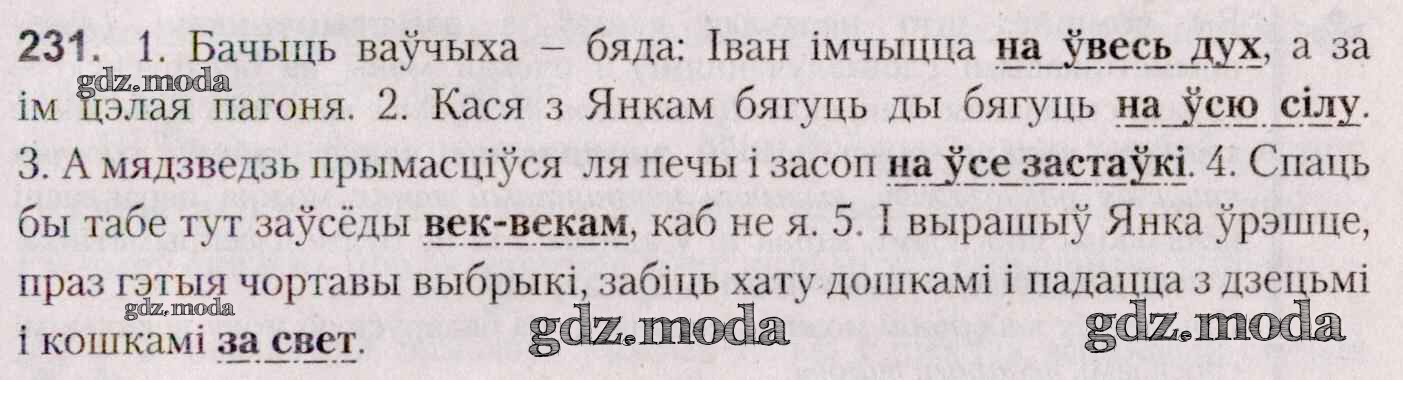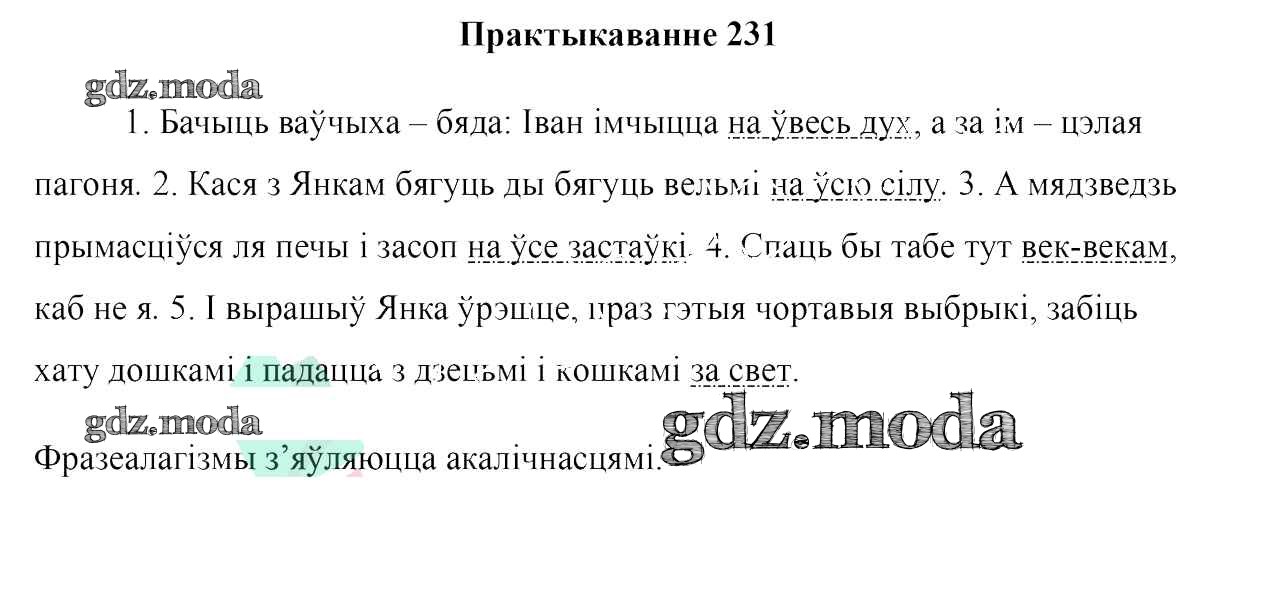 ГДЗ решение к заданию № 231 Белоруская мова 7 класс Валочка Г. М. Национальный институт образования 2020 ФГОС бесплатно на гдз.мода!